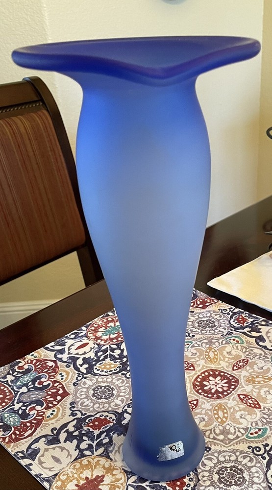 Studio Nova Blue Satin Glads Shaped Vase 12” Tall 5” wide at the mouth. This is a stunning vase with variegating hues of blue...