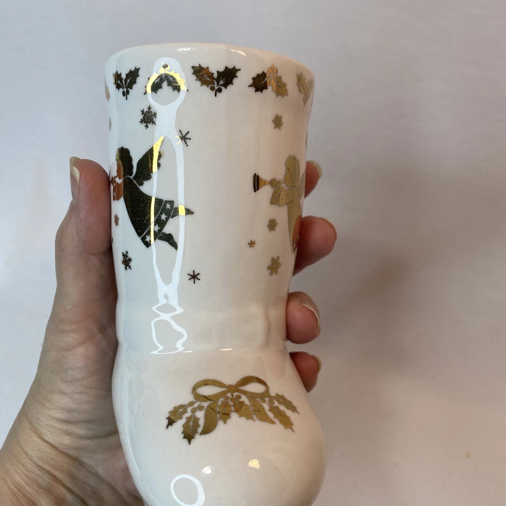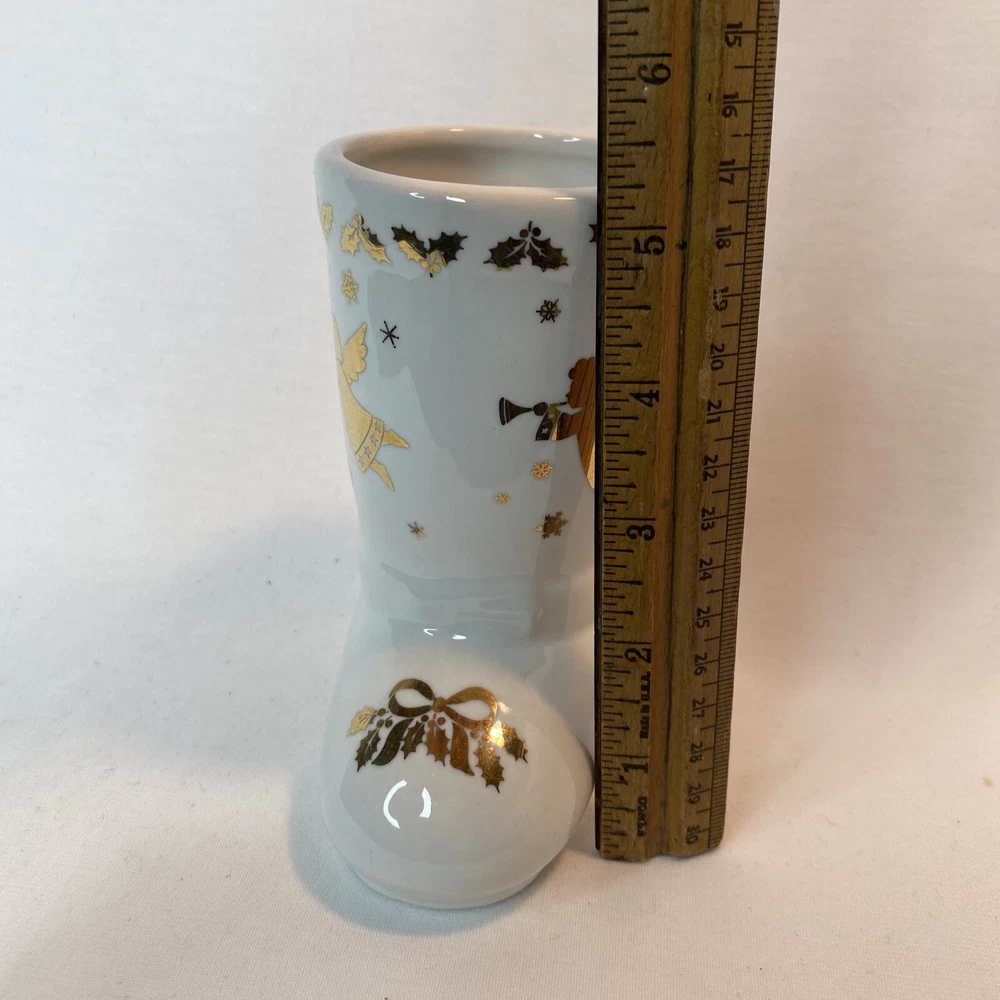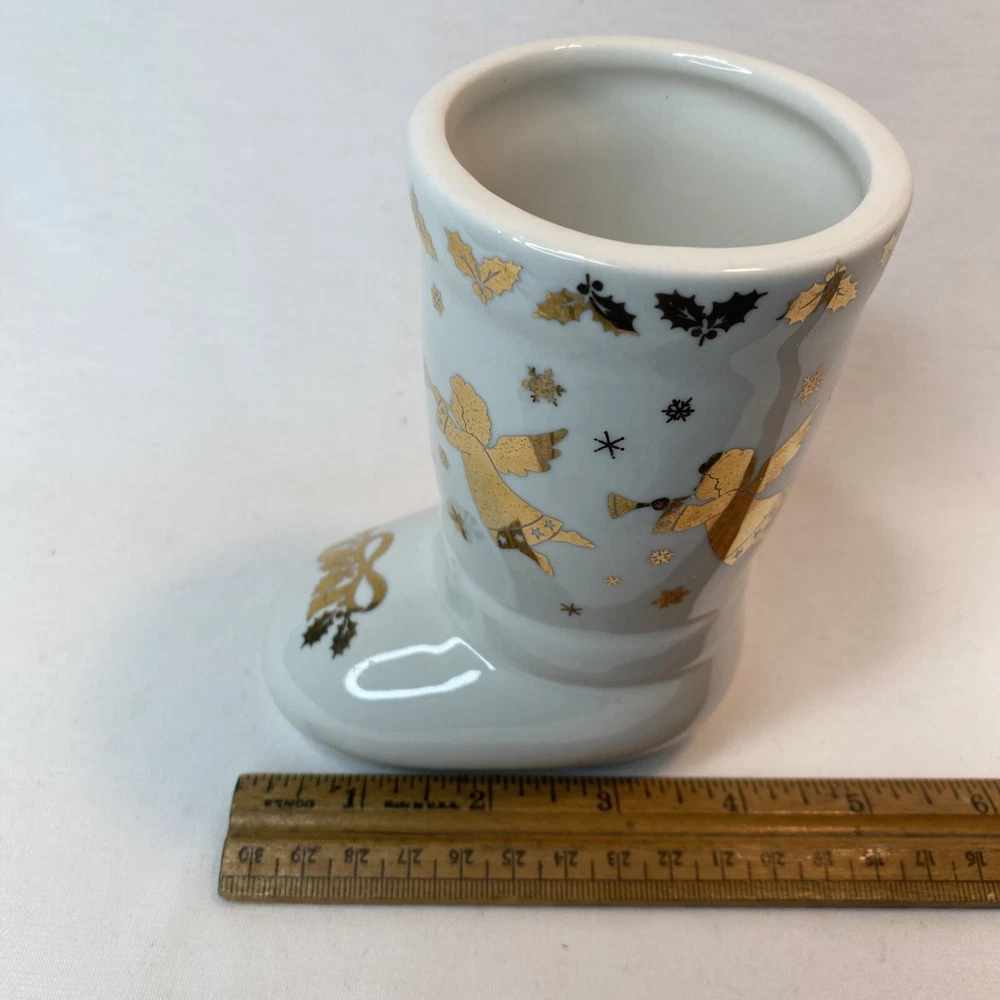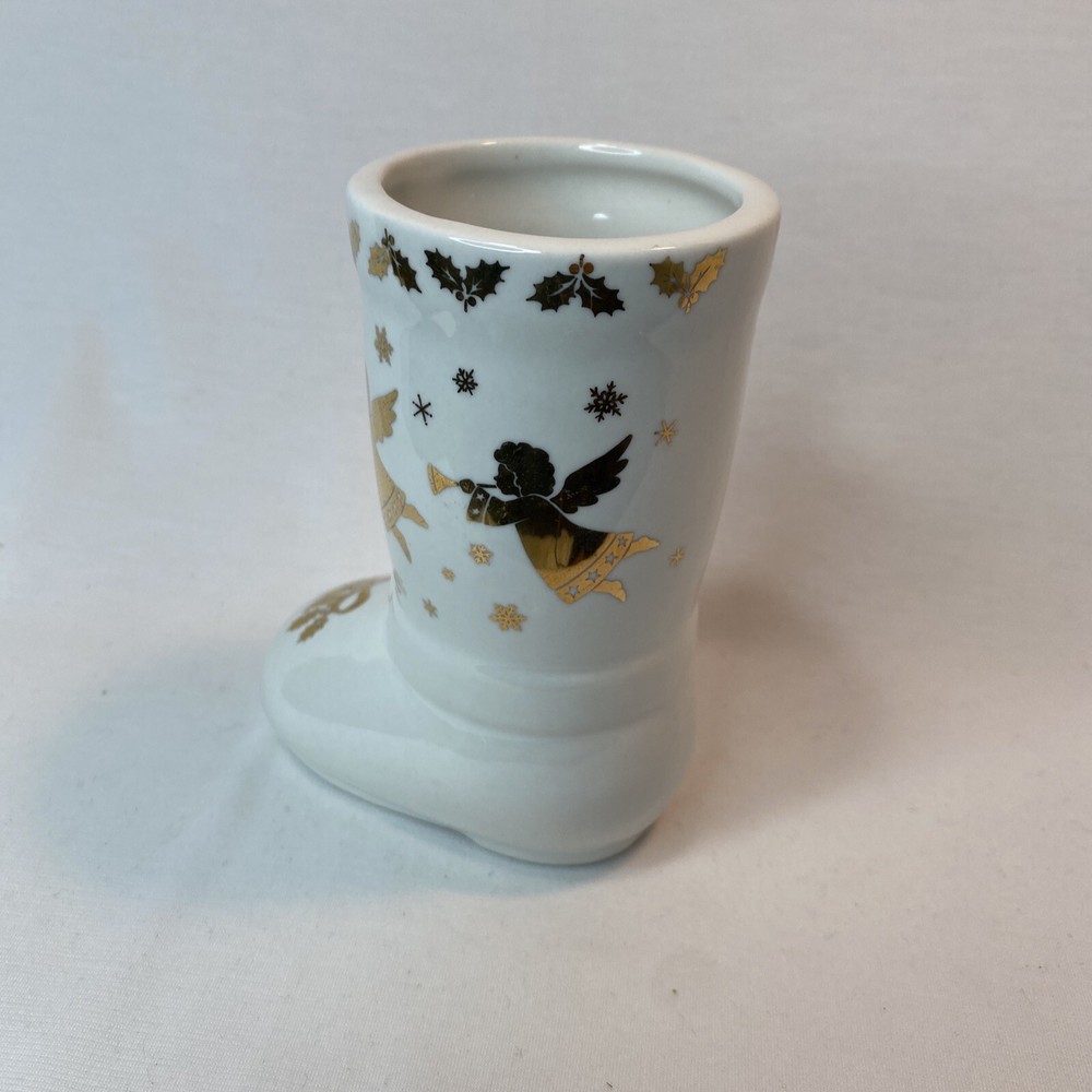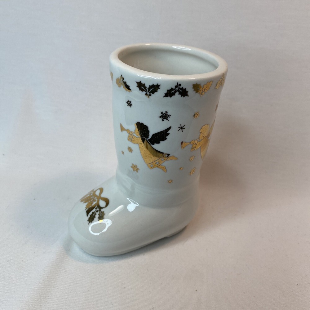 Studio Nova Golden Angel Boot MZ 434. 5 inches tall Very Nice Excellent Condition Very Good Pre owned Nice Holiday Décor no Chips no cracks no stains Thank you for shopping @ PEACEFULVINTAGE I normally Ship within 1 business day All Measurements are Approximate (as clothing lays flat on surface, no stretch) Please see photos for details and let me know if you have any questions.