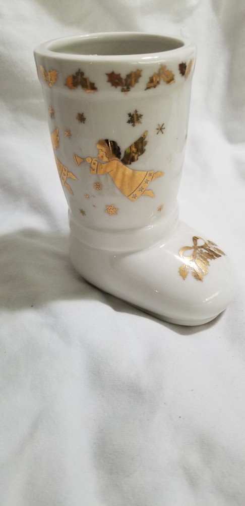 This beautiful Studio Nova ceramic boot vase is the perfect addition to your holiday décor. With its intricate design and white color accented with gold details, it features a charming angel subject that will bring joy to your home. Made of high-quality ceramic material, this boot vase is durable and long-lasting. Ideal for collectors and those who appreciate unique decorative pieces, this vase is a must-have. Its size and shape make it perfect for displaying flowers or as a standalone decorative item. Add a touch of elegance to your Christmas decor with this stunning Studio Nova ceramic boot vase.