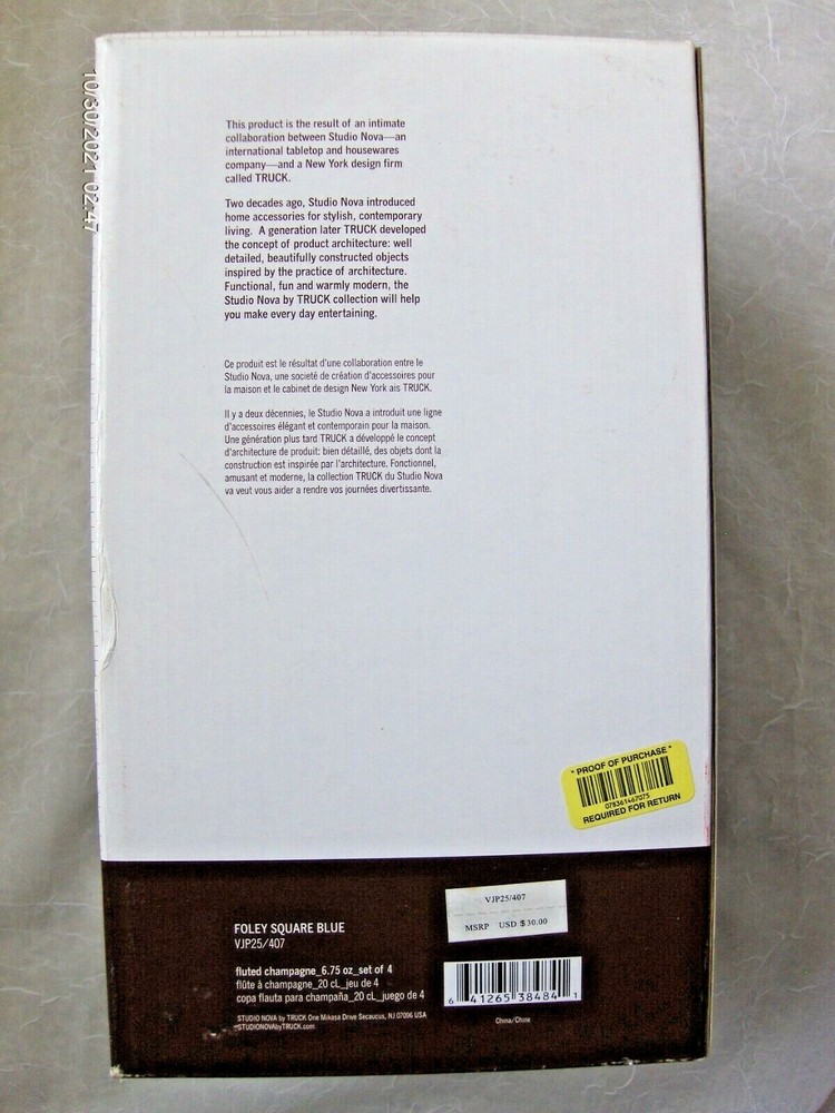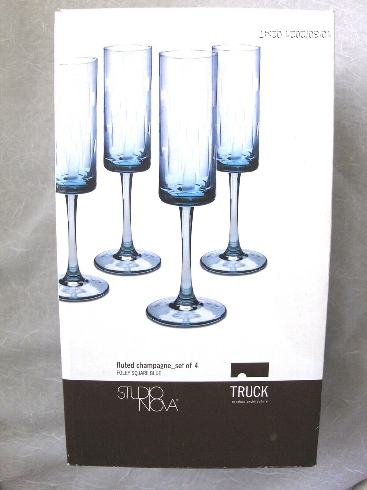 Studio Nova by Truck Collection Fluted Champagne Set of 4 in Foley Square Blue Measures 9" in Height and Top diameter is 1.75" New in Original Box