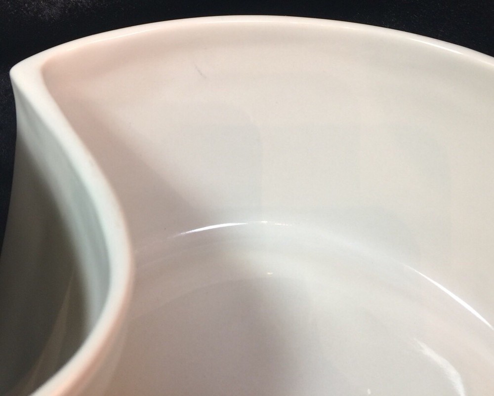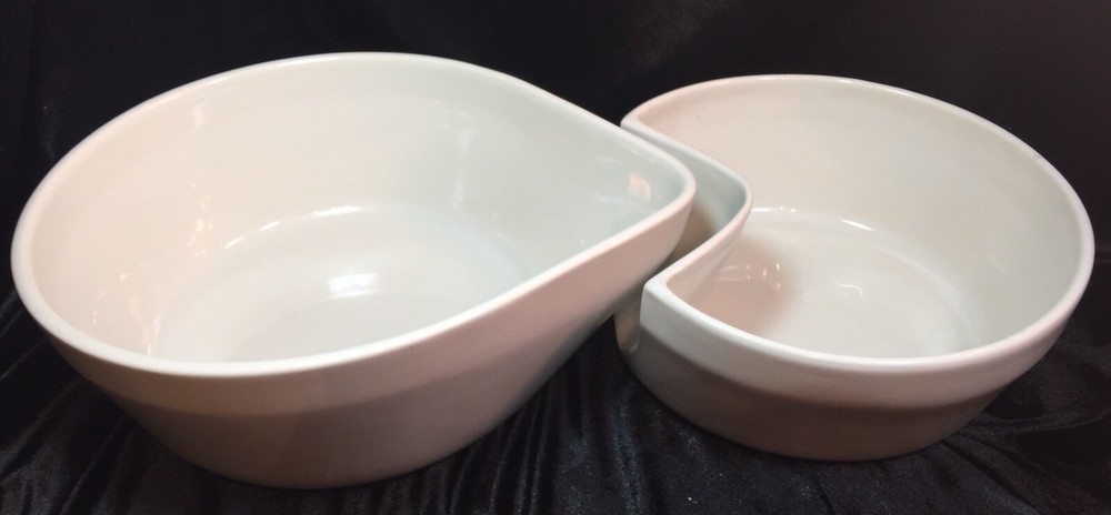 Perfect for Holiday parties and year round use! Fine China--These bowls are ‘interlocking’ for a unique, modern look. Quality item. Minimal sign of use. Great modern lines on this intriguing chip and dip two piece set. Comes with two separate bowls, as pictured. This set is missing the small dip bowl sits on the top of the chip bowls. Does show some light signs of normal use. Largest bowl measures approximately 12” across at the widest point and stands approximately 4 “ tall. Smaller sized bowl measures approximately 9 1/2” at the widest point and stands 3 3/4”’ If you have any problems, comments, questions or concerns please feel free to contact me. Thank you for shopping! Feedback is important to all of us participating in the eBay community. We are always working hard to maintain high standards of excellence and strive for 100% customer satisfaction; so your POSITIVE FEEDBACK is very important. 039