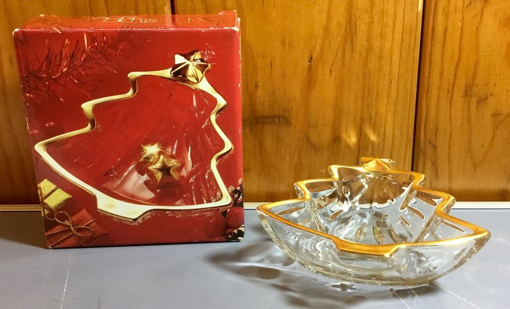 Studio Nova Christmas Tree Shaped Yuletide Gold Trimmed Glass Dinner Mints Dish Thank you for viewing my auction. Up for auction I have a Studio Nova Christmas Tree shaped Yuletide Gold Trimmed Glass Dinner Mints Dish. The dish measure 5-15/16" by 5-1/4", and 1-1/2" deep and is shaped like a Christmas tree with star at the top. The dish is used, but in excellent condition in original box with no fading to the gold trimming. The Studio Nova Christmas Tree Shaped Dinner Mints Dish is being sold AS-IS described in listing. Thank you again for viewing my auction. ATTENTION INTERNATIONAL BIDDERS: BEFORE BIDDING PLEASE MAKE SURE ITEM CAN BE SHIPPED INTO YOUR COUNTRY All items shipped within the U.S.A. will have tracking information. Items shipped through UPS or Fedex will have detailed tracking and date of scheduled delivery. information. Buyer must contact seller within 3 days of auction ending. Auction must be paid within 10 days of Auction closing. DO NOT DUPLICATE OR COPY! Template Made By: © InkFrog.com Auction Templates, Logos, Store fronts and more!