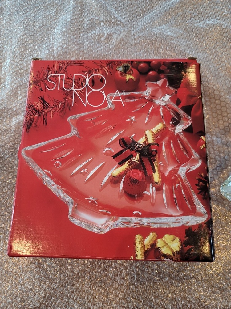 Studio Nova Christmas Tree Shaped Yuletide Gold Trimmed Glass Dinner Mints Dish....