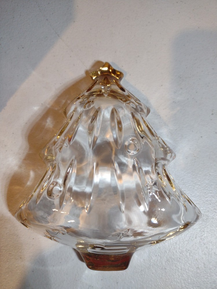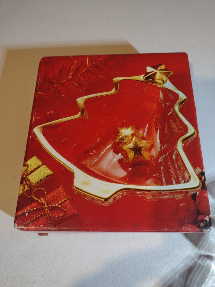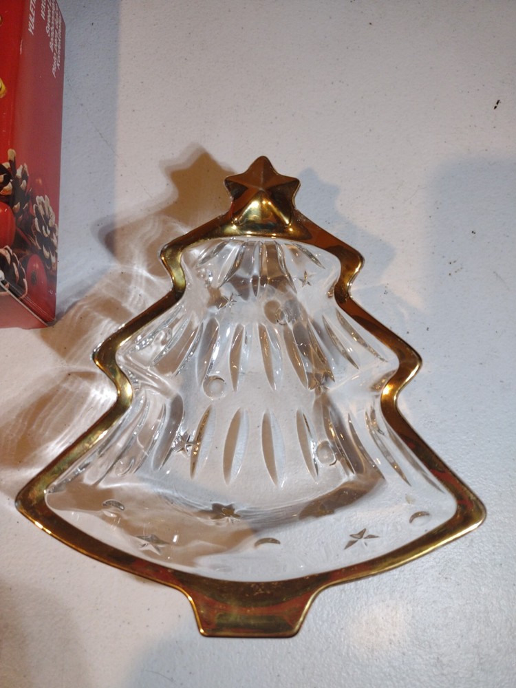 Studio Nova Christmas Tree Shaped Yuletide Gold Trimmed Glass Dinner Mints Dish....
