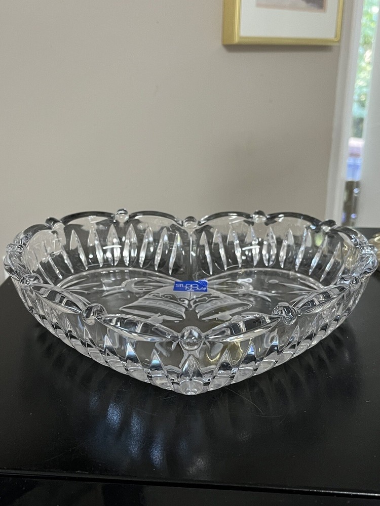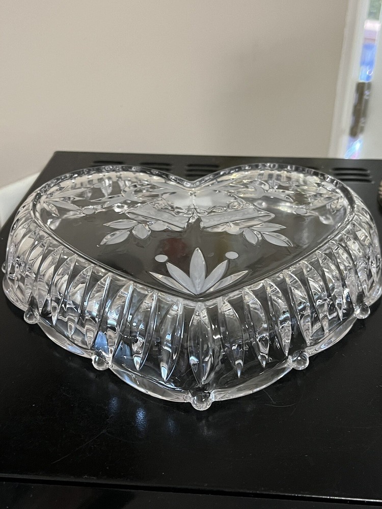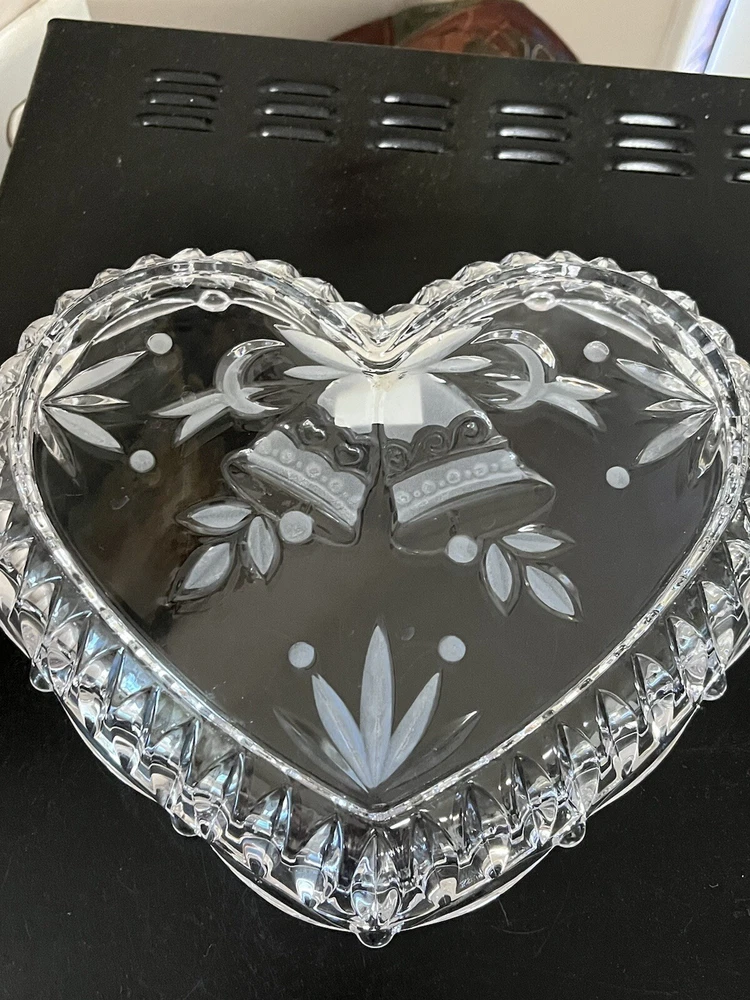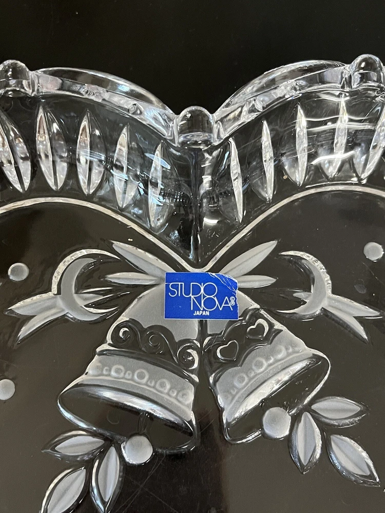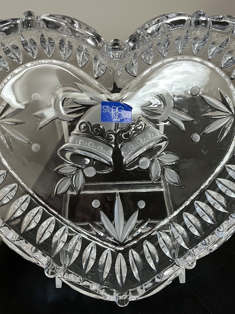 This Listing is for One beautiful Studio Nova Crystal Heart Shaped Dish • Made in Japan • Love … Anniversary ** Sculpted Rim, Lavished with embossed Bells and Frosted Leaves ** 9 inches across the widest part of the Heart, 8 inches from top of Heart to bottom point and 1 3/4 inches deep ** Condition is Excellent… Unused… Original Sticker in Place.. NO scratches chips cracks or breaks…. Bright and shiny and clean! ** Please zoom in on all photos as they are part of the description. ** For more crystal, home and kitchen decor, designer fashions, jewelry and lots of precious Christian collectibles, browse the many categories of our eBay Store.