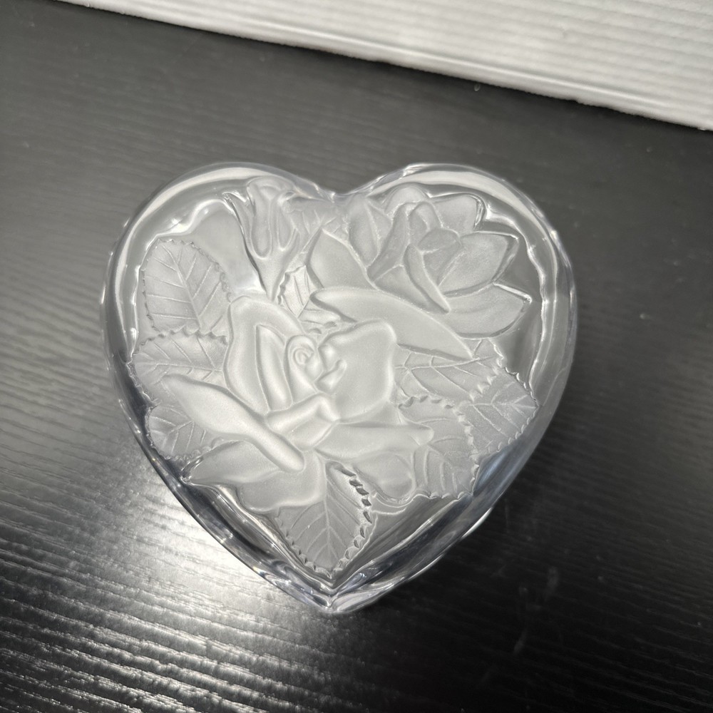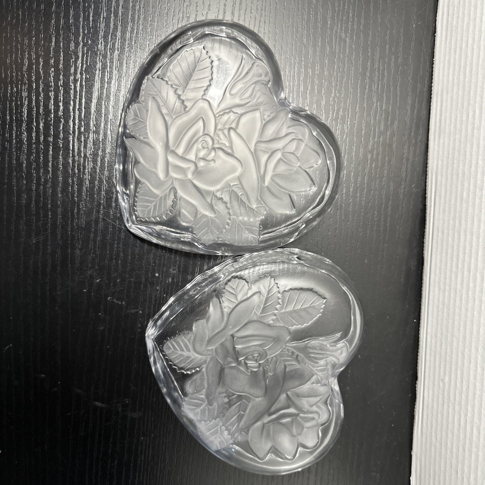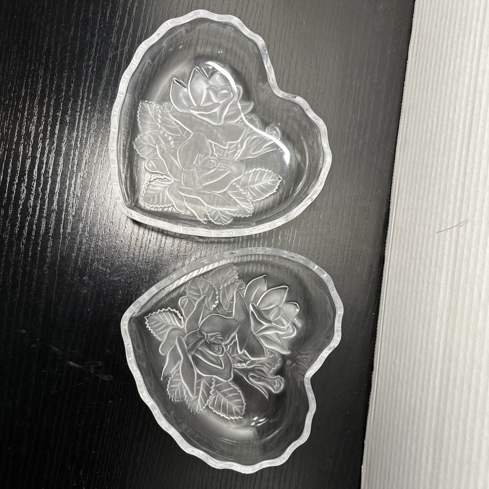 The Studio Nova Crystal Heart Shaped Candy Dish is a stunning piece of glassware with a frosted finish and intricate roses and leaves design. This candy dish features a heart-shaped pattern, making it perfect for storing and displaying candy or other treats in a stylish and elegant manner. Made in Japan by Studio Nova, this unique candy dish adds a touch of sophistication to any kitchen or dining room.