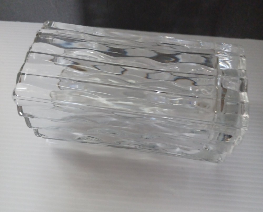 Studio Nova Crystal Pressed Glass Square Vase. Vertical Wave Pattern. Signed....