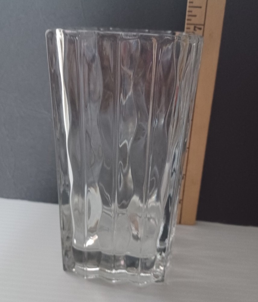 This stunning Studio Nova vase is a true statement piece! The elegant square shape and beautiful vertical wave pattern catch the light beautifully, adding a touch of sophistication to any space. The thick, high-quality pressed glass feels luxurious, and the signed craftsmanship ensures authenticity. Perfect for fresh flowers or as a standalone decor piece—absolutely love it!