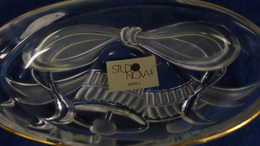 Studio Nova Gold rim Oval Candy Dish Japan Frosted bells Gold 7" L x 4" W...