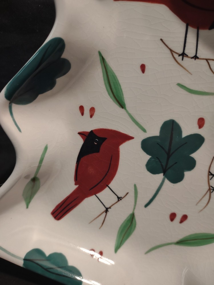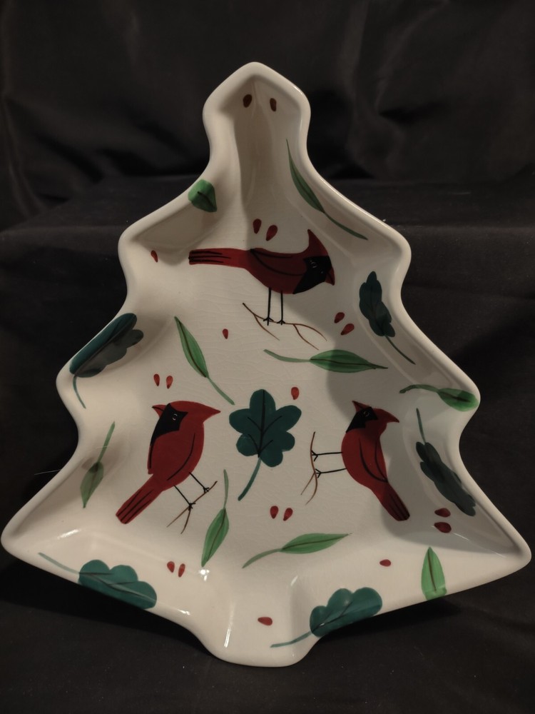 Studio Nova Holiday Cardinal Tree Shaped Serving Plate Red Birds Christmas Thank you for your interest! This very nice and very festive Studio Nova Holiday Cardinal Tree Shaped Serving Plate, Candy Dish, Nut Dish, designed by Susan Steinberg, is in excellent condition. Please the pictures!!! This great Christmastime serving dish measures approx. 9 ¼” X 8 ½”. What a great addition this very nice holiday cardinal serving dish would be to your Christmas serving ware and your holiday collection, or as a Christmastime gift! We are longtime ebay dealers with an excellent reputation you can trust. We guarantee your satisfaction with this great holiday serving dish, as well as our quick and caring shipment of it. Please don’t let this very nice Christmastime serving dish pass you by! * * * * * * * * * * * * * * * * If you aren’t already one of our hundreds of satisfied and loyal customers, please take the time to visit our ebay store, “Erickson’s Emporium,” where “You never know what you’ll find!” We also invite you to check out our eBay store by clicking on “Visit Seller’s Store” on your phone, or “Visit Store” if you’re on a computer, to see our full selection of awesome items! Be the first to shop our new listings which are posted daily! If you would like to “follow” us and our listings, from a listing, click on our name tag (ID) “gregg8349”. From there, click on the heart shape (the heart shape will turn blue when you click on it). You are now following us! Thank you. Cheryl and Gregg.