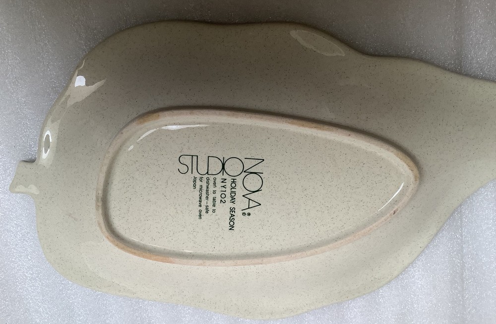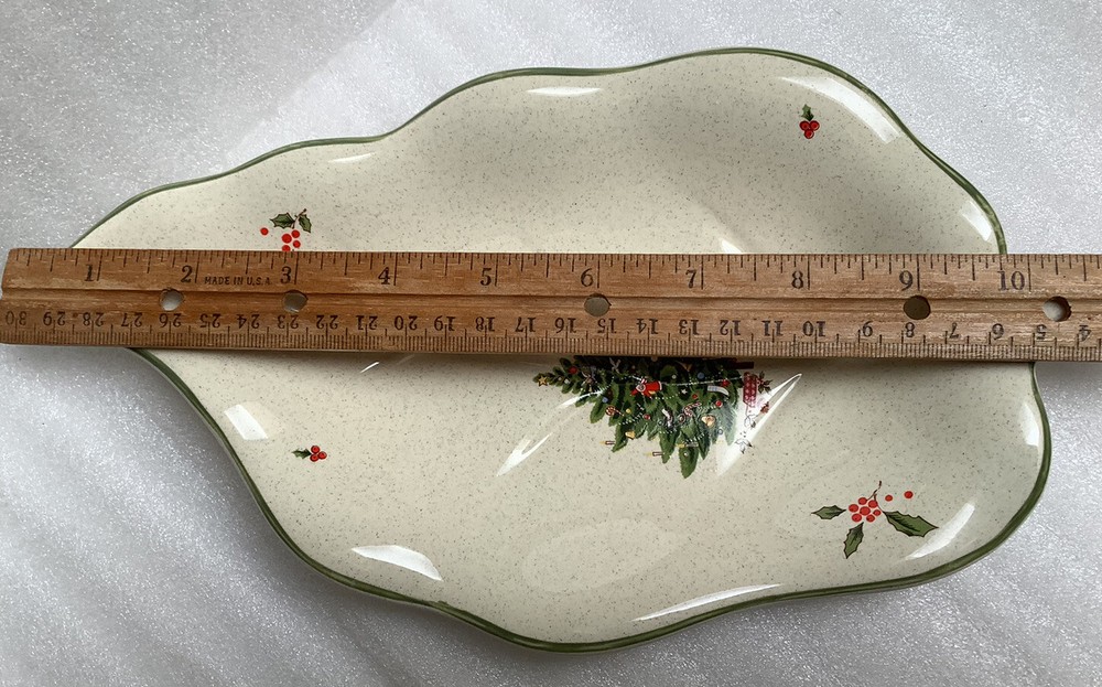Studio Nova Holiday Season Christmas Tree leaf shaped dish 10”. Very nice condition. Shows little if any use. IF YOU PURCHASE MULTIPLE ITEMS, PLEASE REQUEST / WAIT FOR A COMBINED INVOICE. WE TRY TO GIVE AN ACCURATE DESCRIPTION OF ALL ITEMS WE SELL. WE ARE NOT EXPERTS BUT DO THE BEST WE CAN. PLEASE ASK QUESTIONS BEFORE BIDDING. PLEASE CONTACT US IMMEDIATELY IF YOU ARE NOT SATISFIED WITH YOUR PURCHASE AND WE WILL WORK TO MAKE IT RIGHT. PLEASE PAY ATTENTION TO SHIPPING CHARGES ON HEAVY ITEMS. THE FARTHER THE PACKAGE HAS TO TRAVEL, THE HIGHER THE SHIPPING COSTS. THIS IS HOW THE UNITED STATES POST OFFICE NOW CALCULATES THEIR RATES. ALL ITEMS COME FROM A SMOKE FREE HOME. WE DO COMBINE SHIPPING SO BE SURE TO CHECK OUR OTHER AUCTIONS! PAYMENT MUST BE RECEIVED WITHIN 3 DAYS AFTER CLOSE OF AUCTION