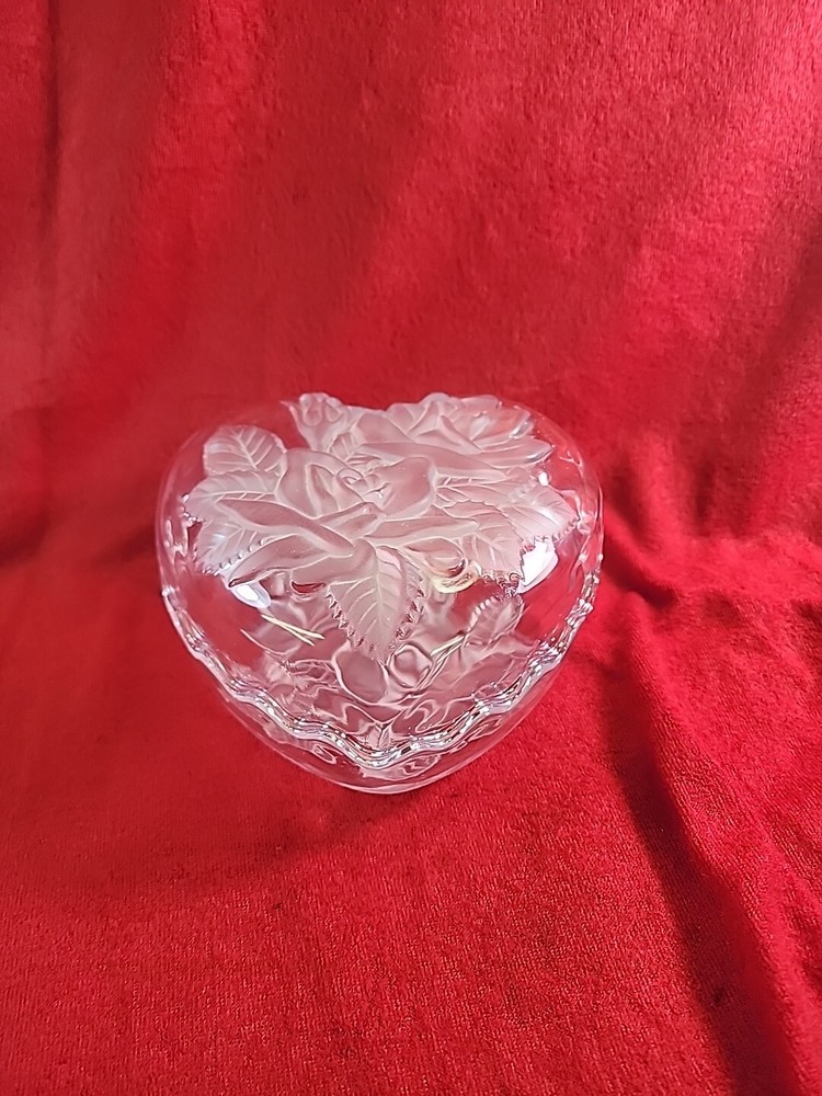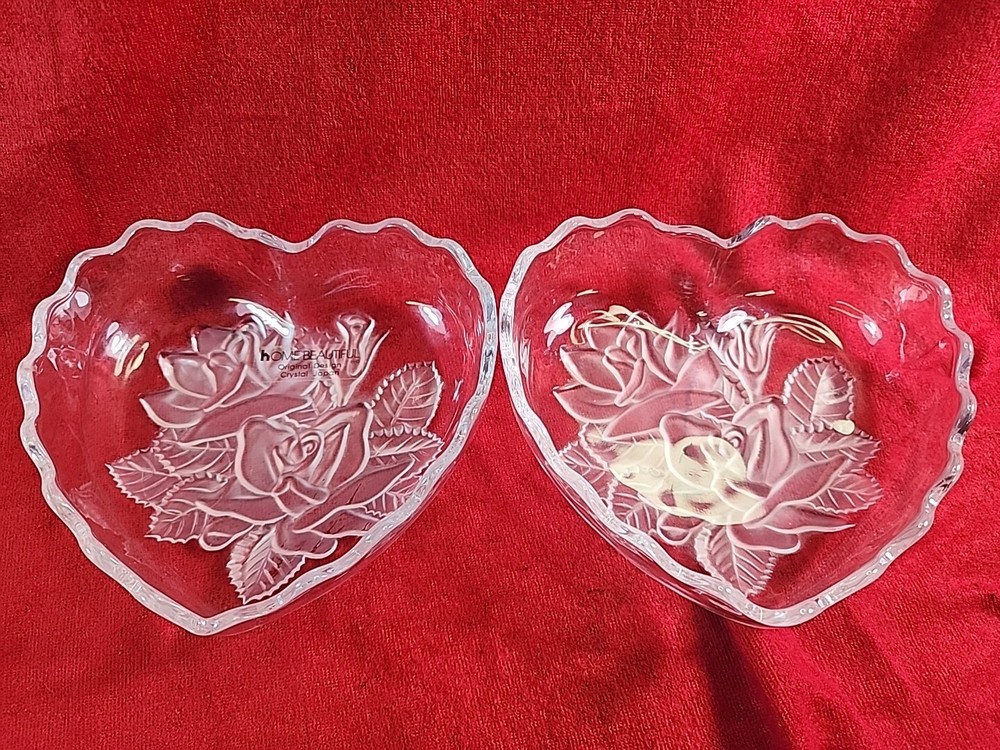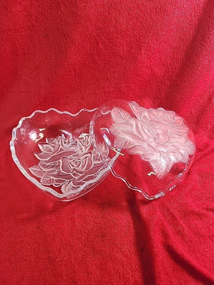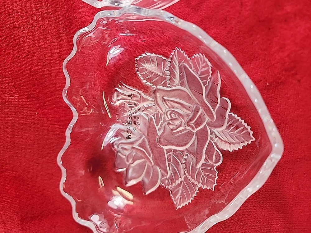 Add a touch of elegance to your home decor with this beautiful heart-shaped candy dish from Home Beautiful. The dish features clear crystal glass with an etched frosted finish and a lovely pattern of roses and leaves. It has one compartment for storing candy snacks and measures 5.5 inches in length, width, and diameter, with a height of 3 inches. This handmade dish is an original from Japan and comes in a boxed packaging. It is recommended to hand wash only for proper care. The dish weighs 1 lb 6 oz and is part of the Studio Nova product line. Perfect for any occasion, this candy dish is a must-have for anyone who loves to add a touch of beauty to their home.
