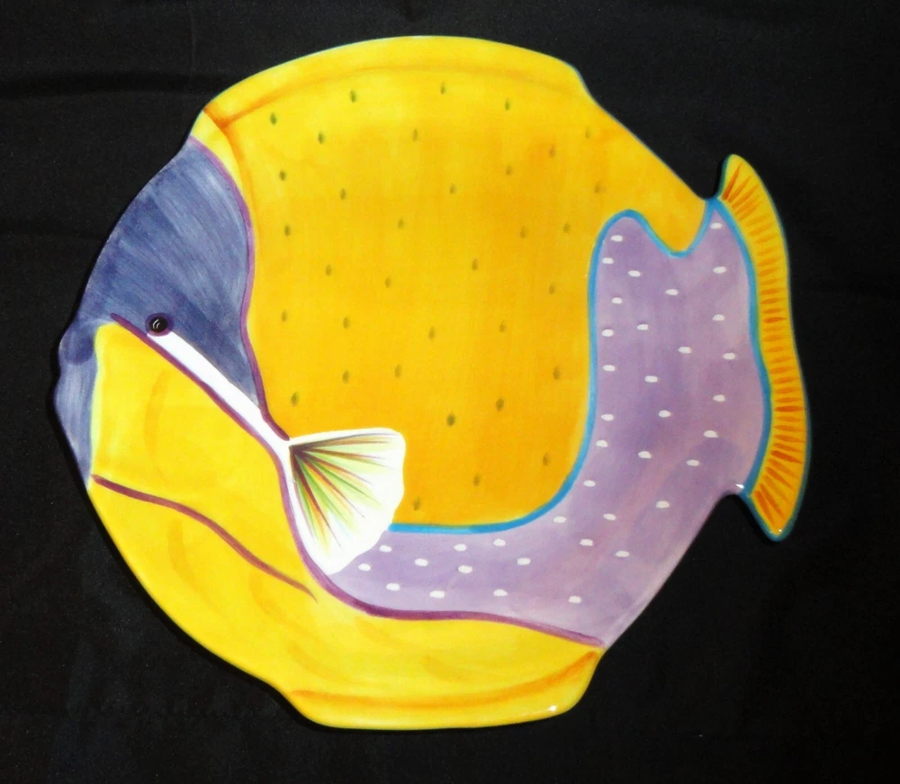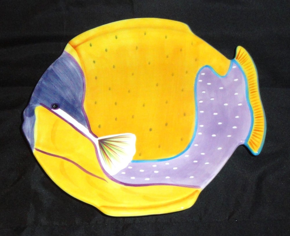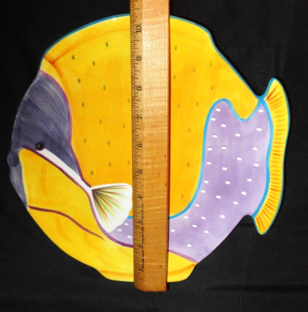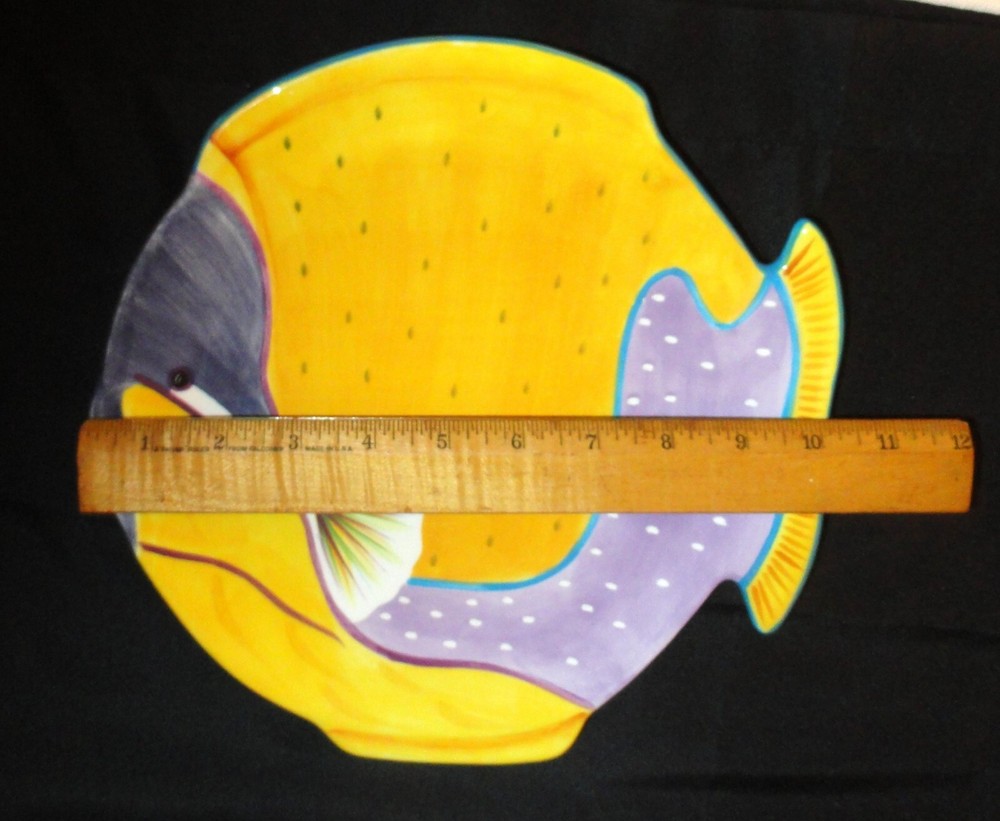 Studio Nova Island Blow Fish Shaped Plate/Platter 10" Orange & Purple Fish plate ~ Studio Nova ~ good condition with no chips or cracks ~ measurements in pics. My items are sold as is please look at the pics for reference or message for more info. I ship USPS the day after buying except for weekends as they are closed Sundays, we were informed the shipping times for USPS are going to take longer to arrive, if you don't receive the items in a timely manner message me.