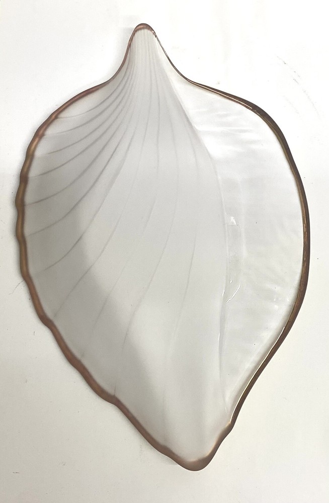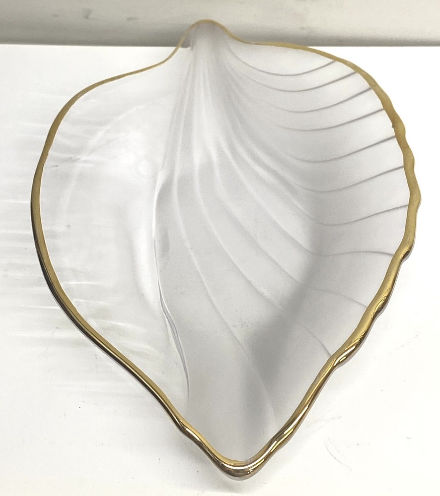 Studio Nova Leaf Dish Gold Edge Clear/Frosty Candy Trinket 8" Japan...