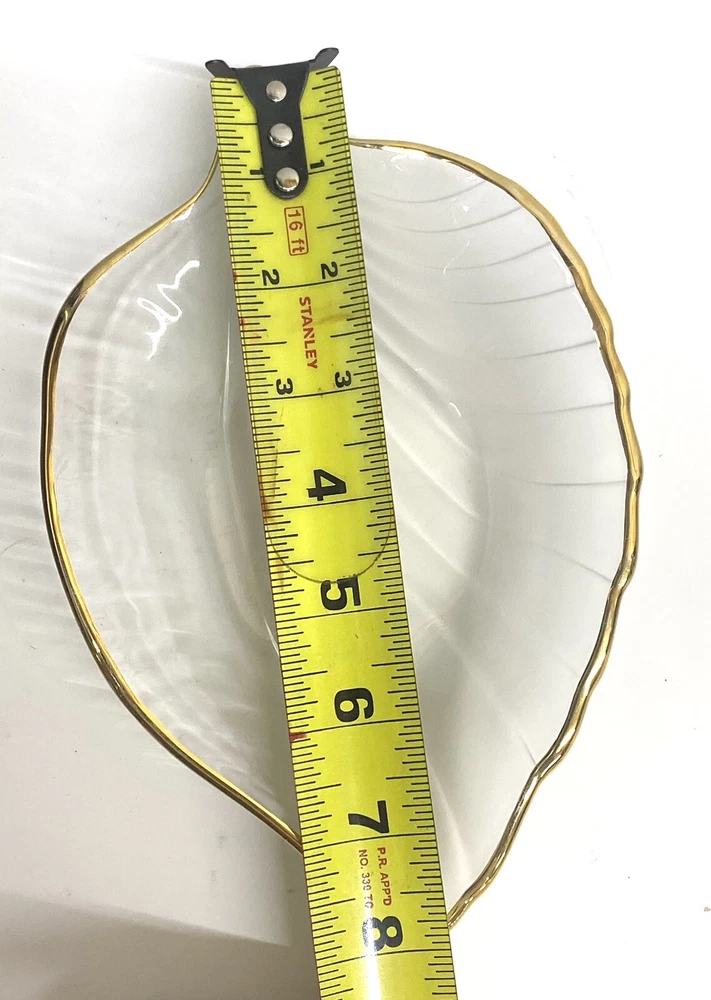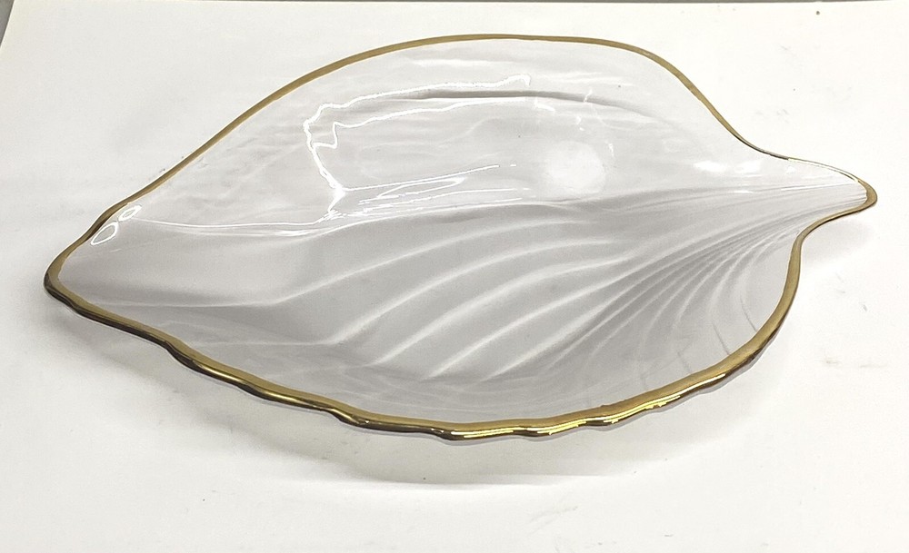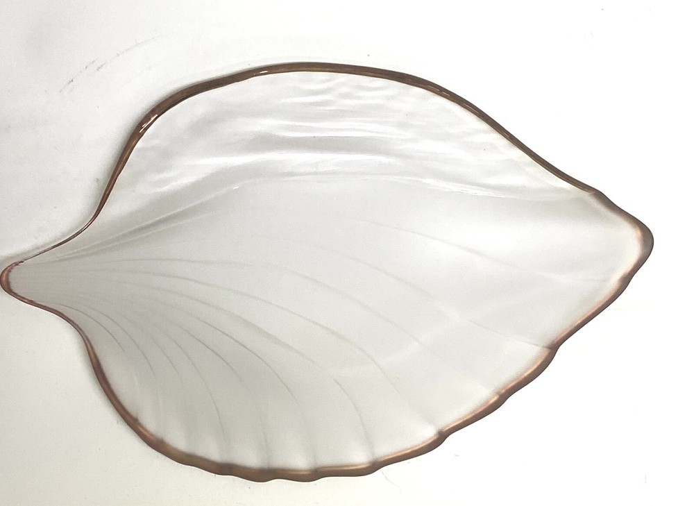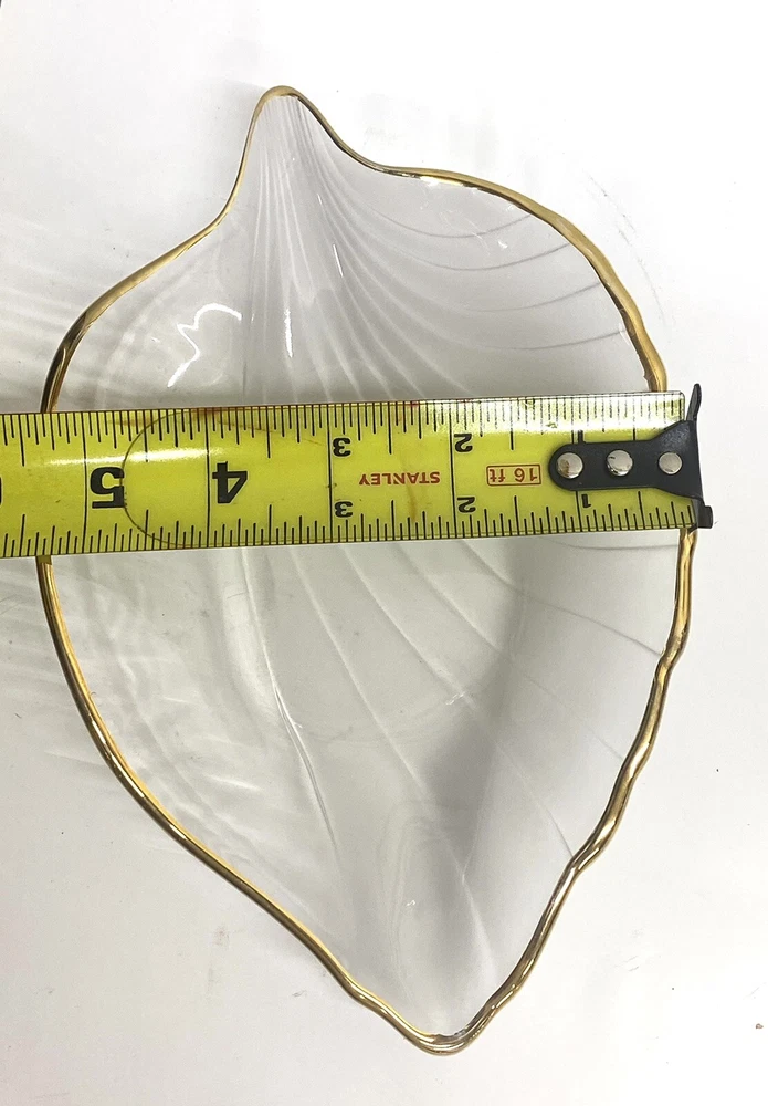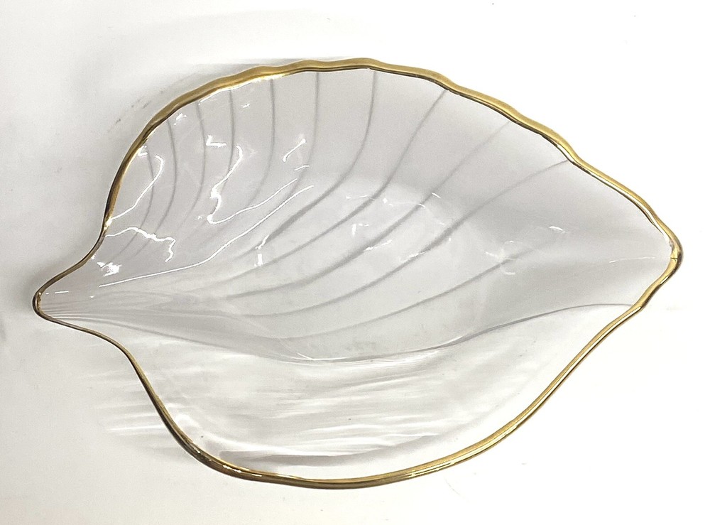 This elegant leaf-shaped dish is absolutely stunning! The delicate gold edge adds a touch of luxury, while the clear/frosty design makes it perfect for displaying candies, jewelry, or small trinkets. The craftsmanship is top-notch, and the 8" size is just right—not too big, not too small. Made in Japan, it feels high-quality and durable. A beautiful accent piece that elevates any table or countertop!