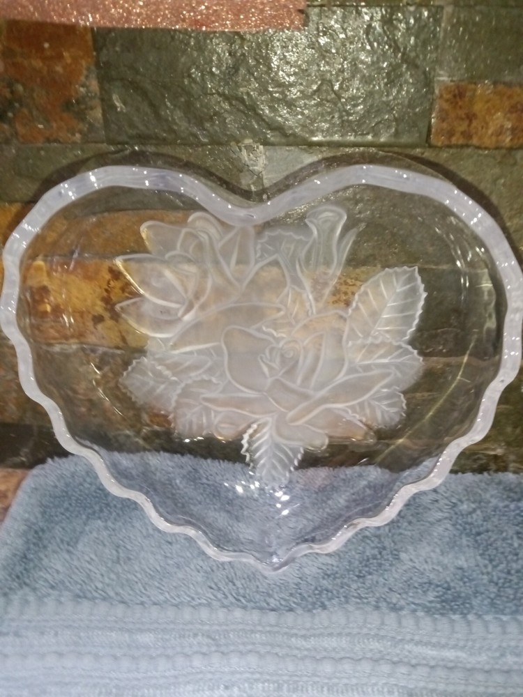 Studio Nova Made In Japan Glass Heart Shaped Embossed Candy Dish Trinket Bowl