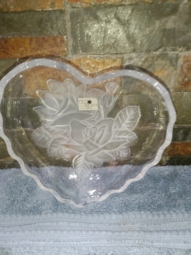 Studio Nova Made In Japan Glass Heart Shaped Embossed Candy Dish Trinket Bowl...
