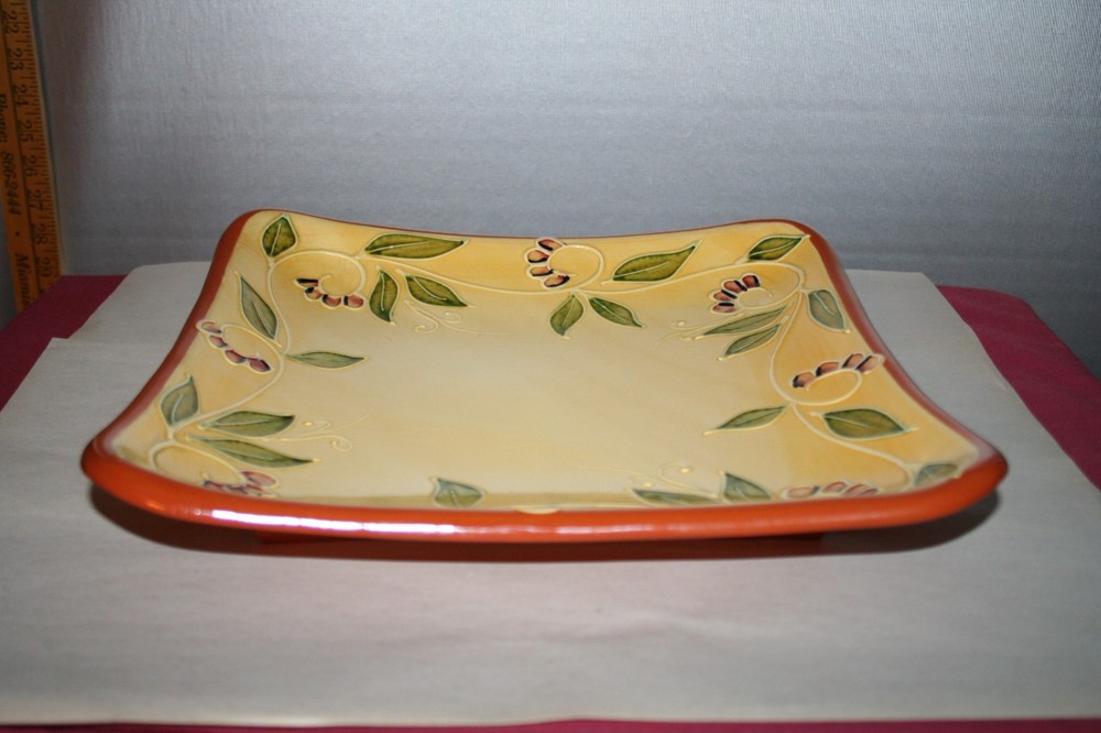 This offering is for a Studio Nova serving platter in the Olivia pattern. It is 12-1/2 inches square and 2 inches tall. The design is floral. The edge is a medium brown color. There are no chips, cracks, or repairs. The color is darker around the edge and lighter in the middle as noted in the pictures. Priced to sell! Visit my store at www.stores.ebay.com/Majics-Hidden-Treasures . I have many interesting and unique items for sale. I describe each item to the best of my ability, however, make sure to look closely at the pictures and you be the judge. You may see the item differently than I do. The pictures are of the actual item you are bidding on. This item is sold as-is. Email me if you have any questions before bidding. This is a pre-owned, vintage, antique, or estate piece bought at auctions. Do not expect perfect, new or like new condition unless stated in the listing. Shipping Information We offer 3 options for shipping. Click on the Shipping and Payment tab next to the Description tab to see the price for each option: · USPS Parcel Select – Least expensive and slowest shipping with NO insurance. · USPS Priority: Faster shipping time, less handling, and insurance up to a value of $50. · UPS: Faster shipping time and insurance up to a value of $100. UPS does not ship to post office box addresses. Make sure you have a street address if you choose UPS shipping. I do combine shipping when possible. Place your purchases in the eBay Shopping Cart, then click on request combined shipping and do not pay until you receive an invoice from me with the combined shipping charge. I only ship to the address listed with eBay. No drop shipping. A $1.00 handling charge is added to all orders. Any package shipped internationally and weighing 4 pounds and over must be shipped at Priority International rates. This is a US Post Office requirement. Feedback Positive feedback is very important to the success of an eBay seller. I do my best to describe, ship, and complete each transaction to the ultimate satisfaction of my buyer. Before leaving neutral or negative feedback, contact me so we can resolve any problems. Thanks for looking!
