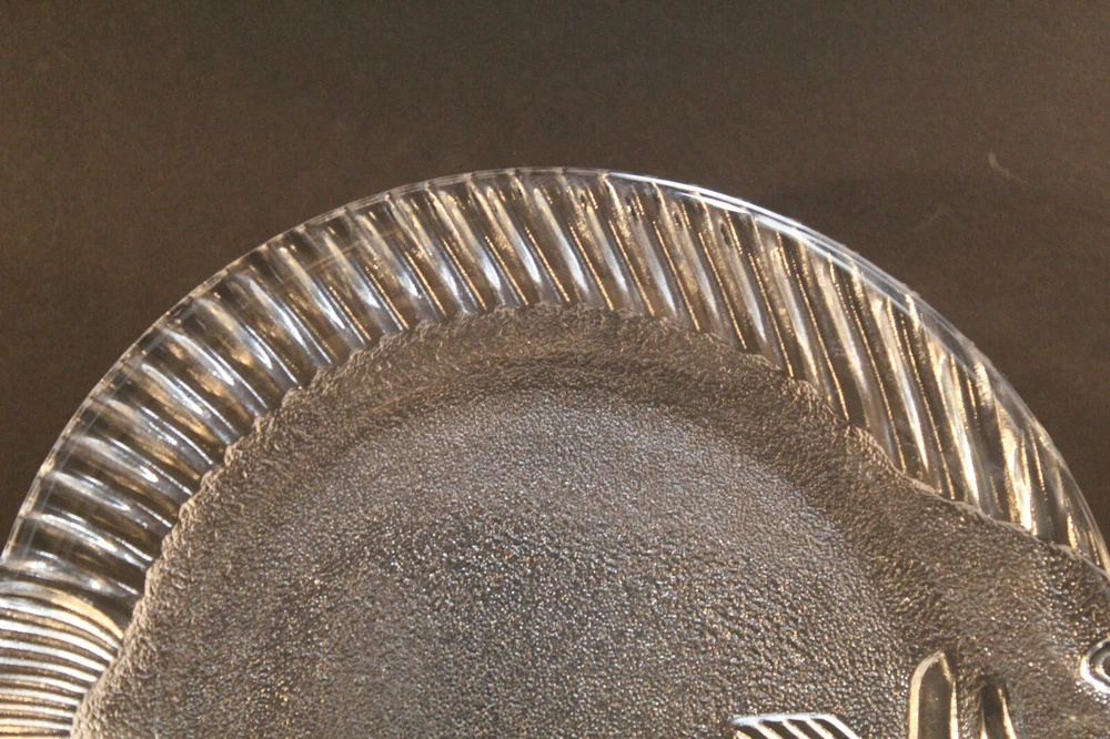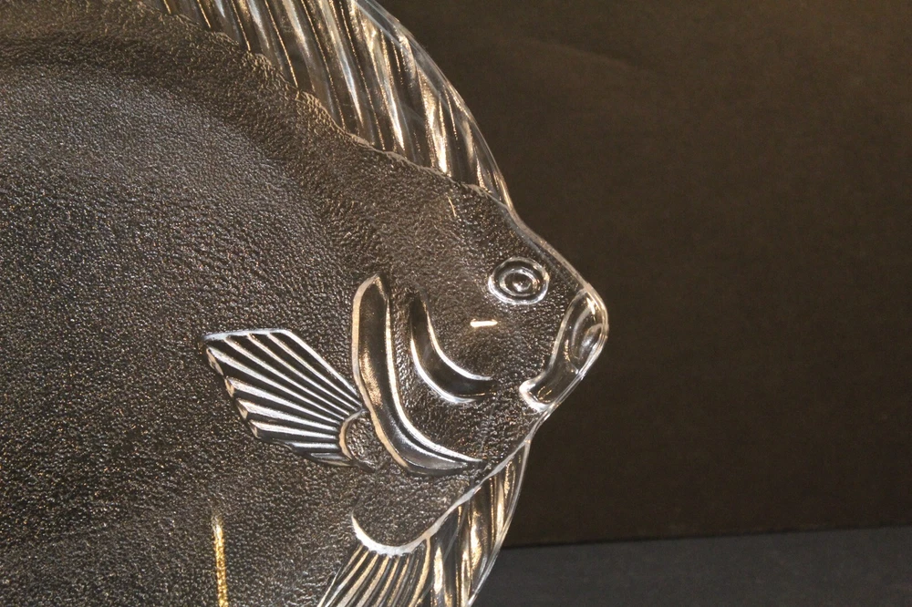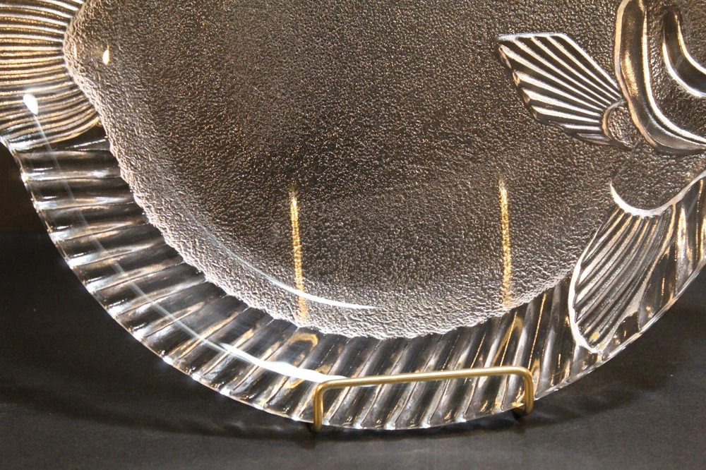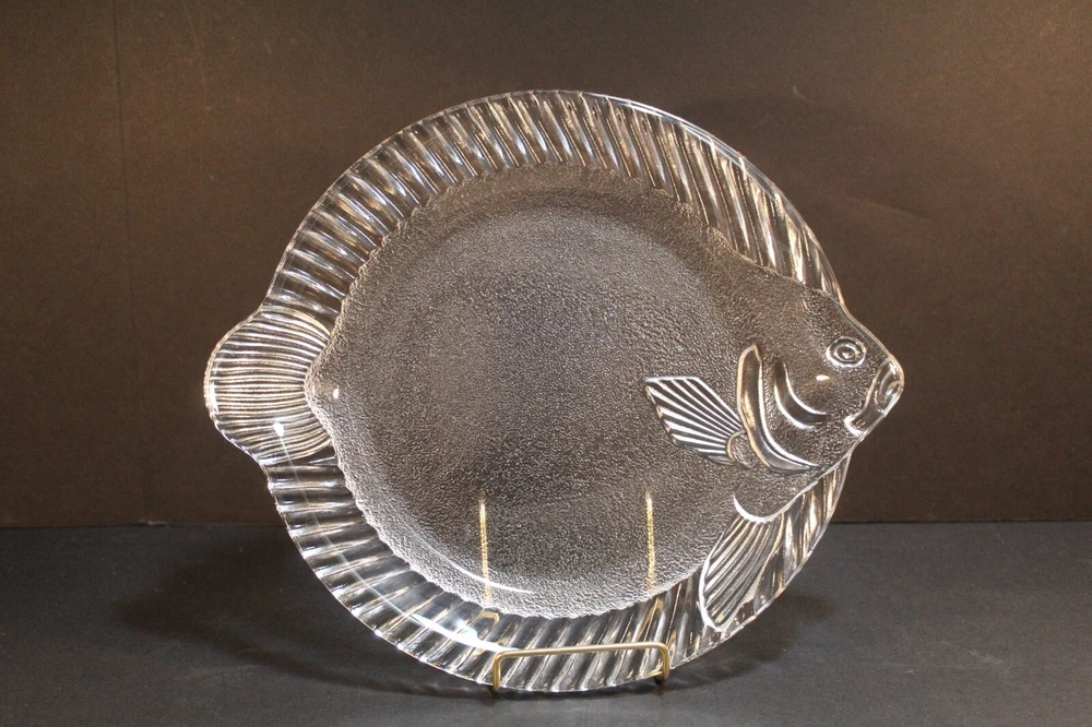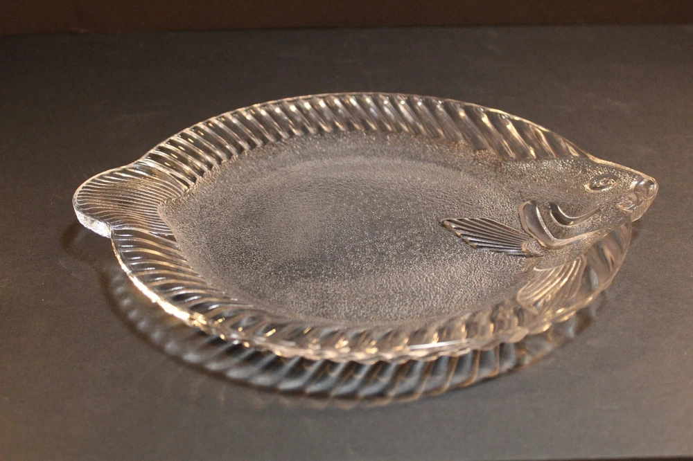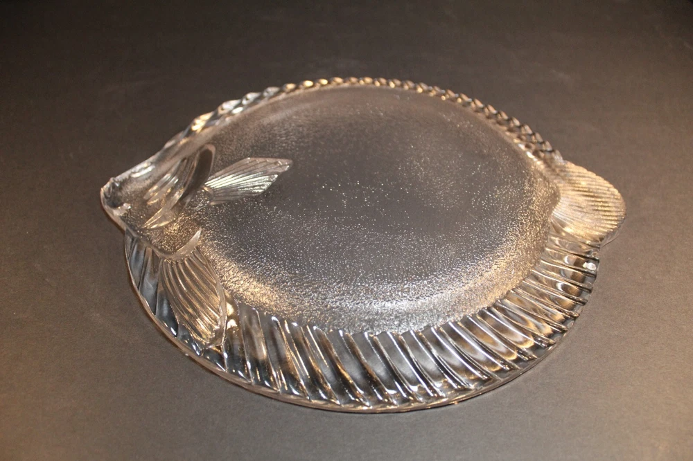 Vintage Studio Nova Pesca Round Fish Shaped Glass Serving Platter. This clear glass serving platter is perfect for serving fish or vegetables. The platter was produced in Japan by Studio Nova. It is approximately 11 1/2" x 10 1/4". The box is in worn condition while the glass fish is in excellent condition with no chips or cracks. California Residents add 7.25% tax on all purchases.