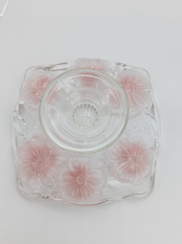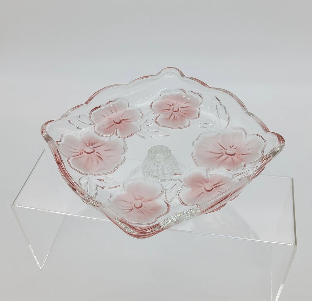 Studio Nova Platter Footed Crystal Plate Bouquet Pansy Bon Bon Germany. Beautiful pink plate. No cracks or chips. Excellent condition. Measures approximately 3" tall and 6.75" across. Please see photos for close up details.