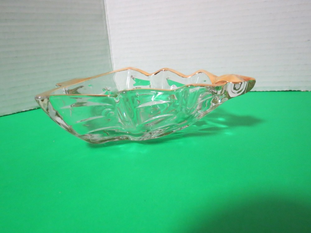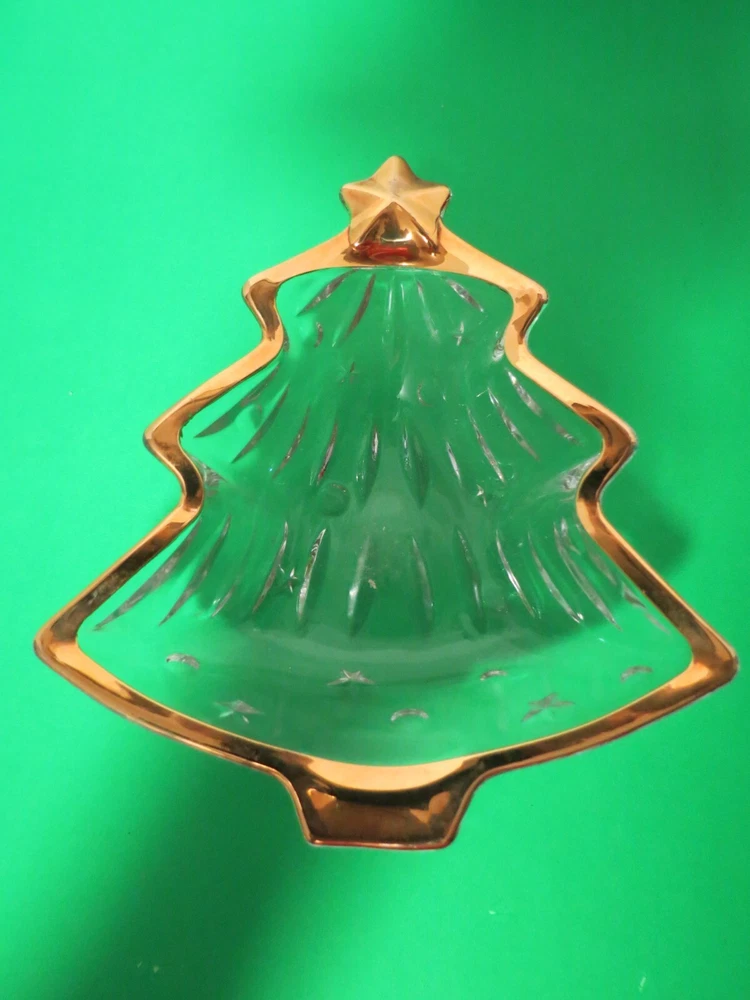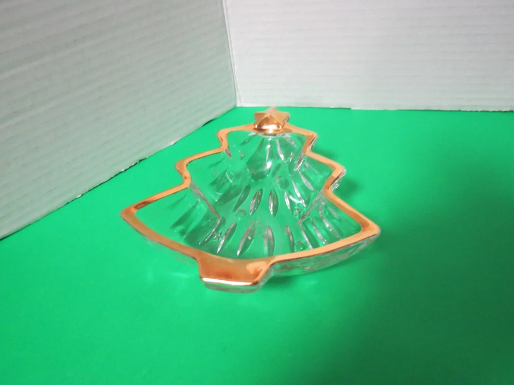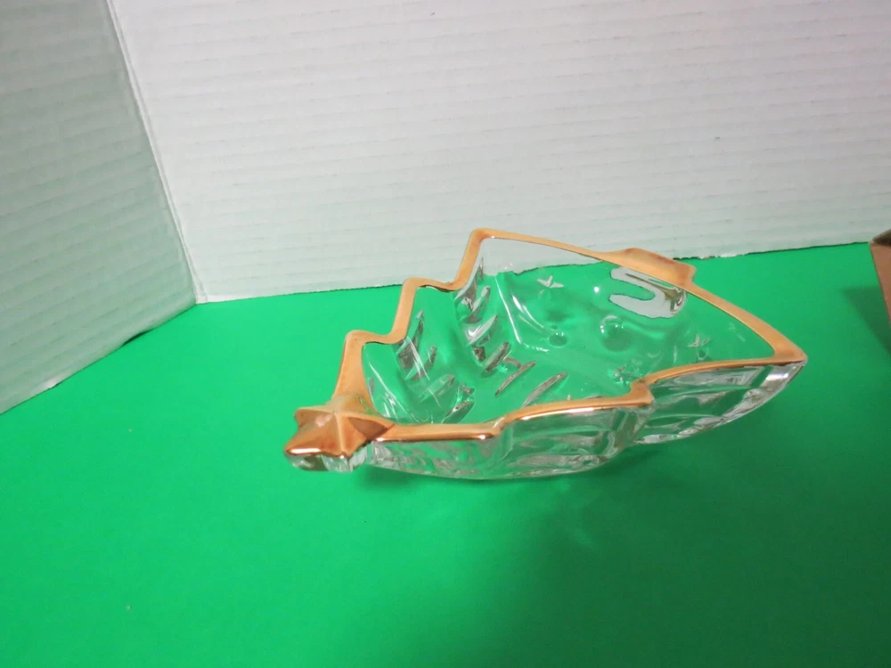 Studio Nova Spirit Gold Trim Christmas Tree Shaped Glass Candy Dish In original Box Clear glass dish with gold trim Measures 6"L x 5"W We ship same business day We also ship on Saturday No handling charges Thank you for Looking