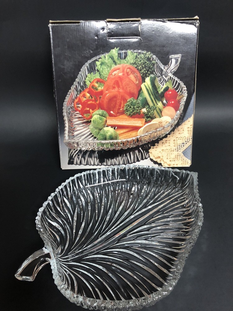 Studio Nova Summer Leaf 9" Hostess Server Clear Glass Dish Bowl Textured Mikasa. New in original box. Will only ship in the Continental United States. Thanks for looking. 011