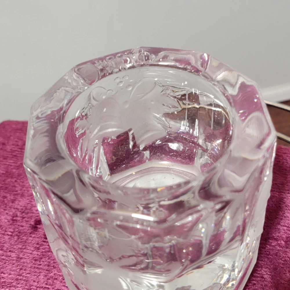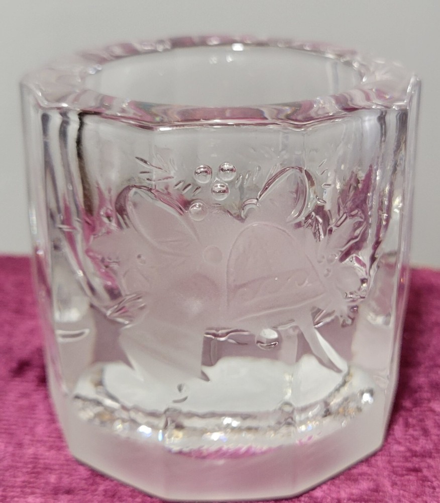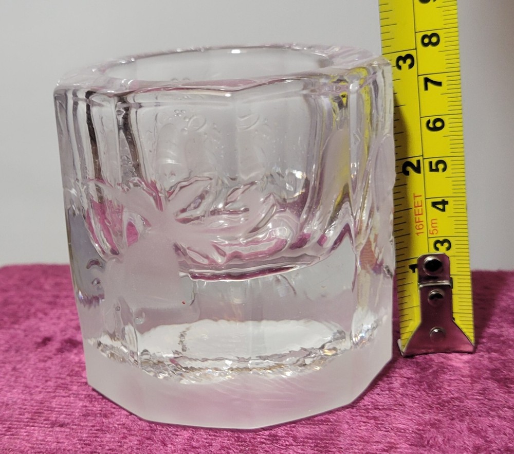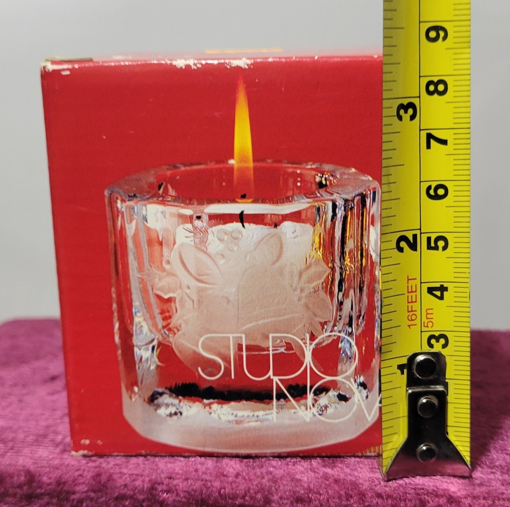 The Studio Nova Tea Light Candle Holder is a stylish piece designed for holding tea light candles. Made of clear glass with frosted accents in the shape of bells, this holder adds a touch of elegance to any space. Measuring 3x3 inches, it is suitable for tea light candles and perfect for creating a warm and cozy atmosphere in your home. This tea light holder is a charming addition to your holiday or everyday decor, crafted in Japan with quality glass material.