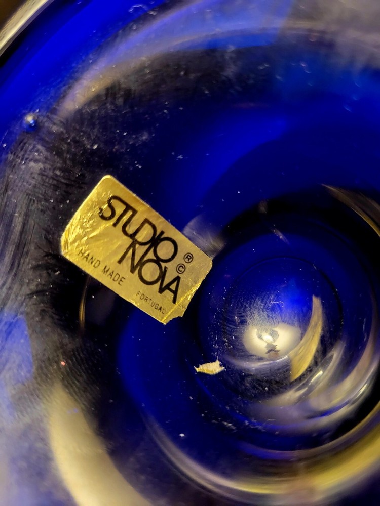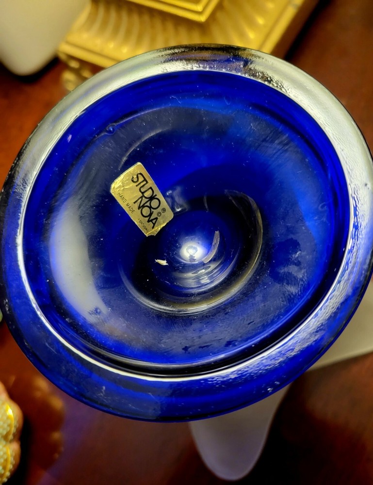 Studio Nova Tulip Shaped Frosted Art Glass Cobalt Blue Pedestal Vase Portugal. Excellent condition. 7" H x 8" W...
