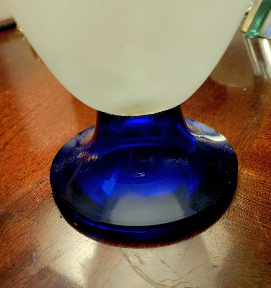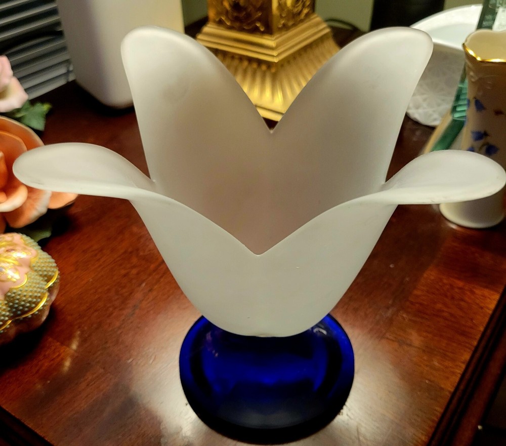 Studio Nova Tulip Shaped Frosted Art Glass Cobalt Blue Pedestal Vase Portugal. Excellent condition. 7" H x 8" W