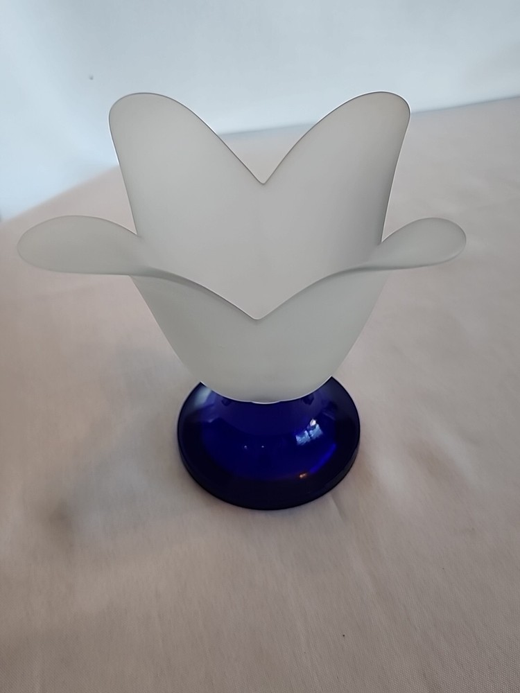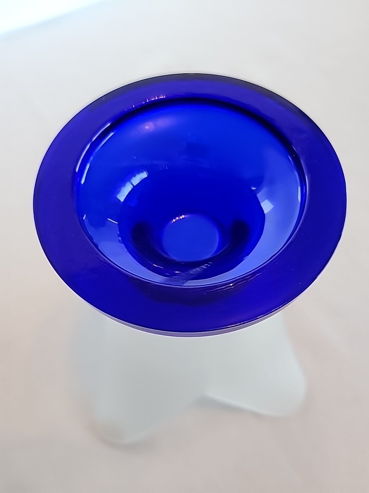 This stunning Studio Nova vase is a must-have for any collector or lover of art glass. Its tulip shape and frosted finish add an elegant touch to any room, while the vibrant cobalt blue color makes it a standout piece. Made in Portugal, this vase is a high-quality item that is both beautiful and functional. It features a unique design that is perfect for displaying your favorite flowers or as a standalone decorative piece. The vase measures 6.75 inches in height and is made from high-quality glass, ensuring its durability and longevity. This one-of-a-kind piece is sure to impress any guest and is a must-have for anyone who appreciates fine art and collectibles.