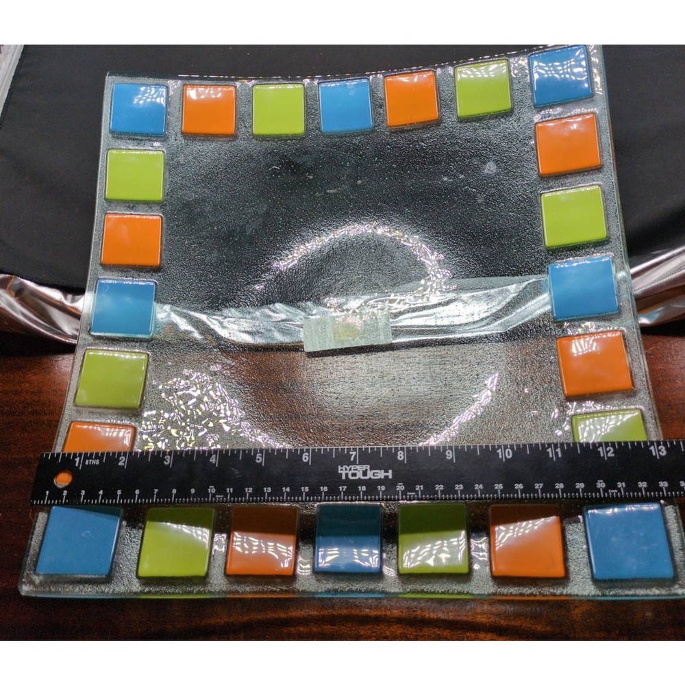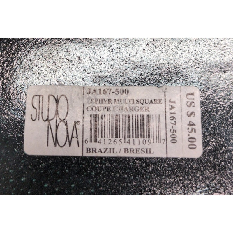<![CDATA[<div>Studio Nova Zephyr Multi-Square Thick Clear Bubble Glass 13" Plate Charger Accents 2 scratches- See Photo