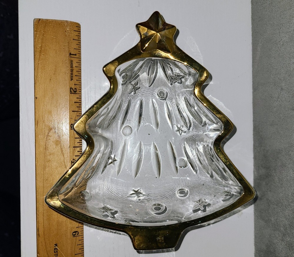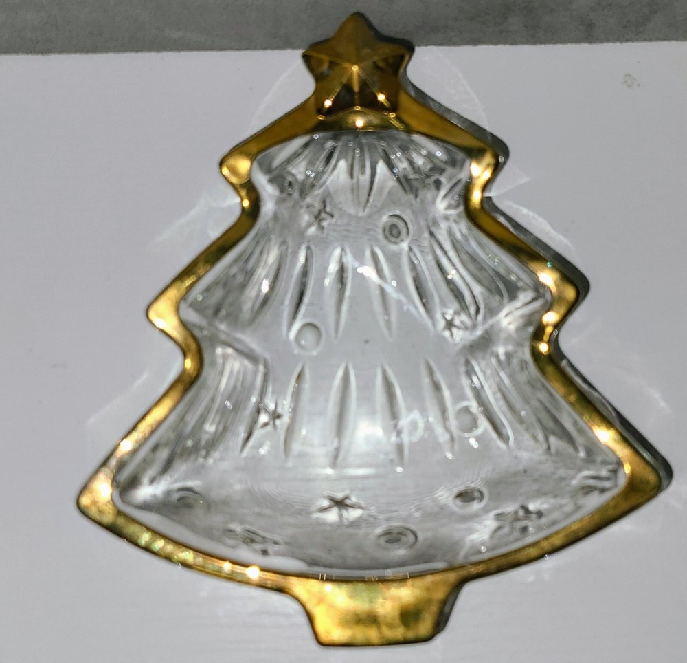 Studio Nova clear gold Trim Christmas tree Shaped Candy Dish....