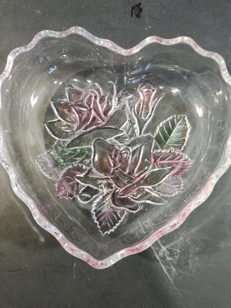 Studio Nova glass heart shaped candy/trinket dish Approx. 5 3/4" x 1 3/4" VGC