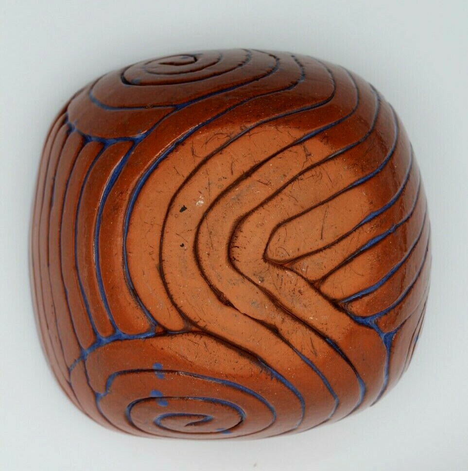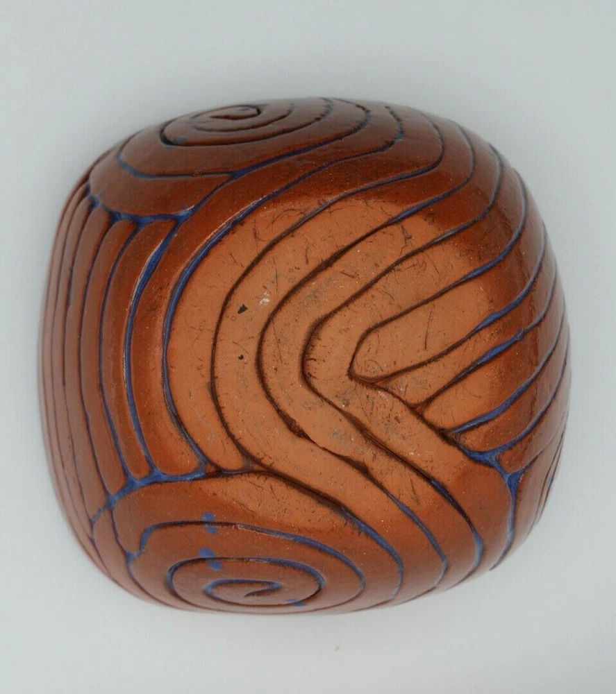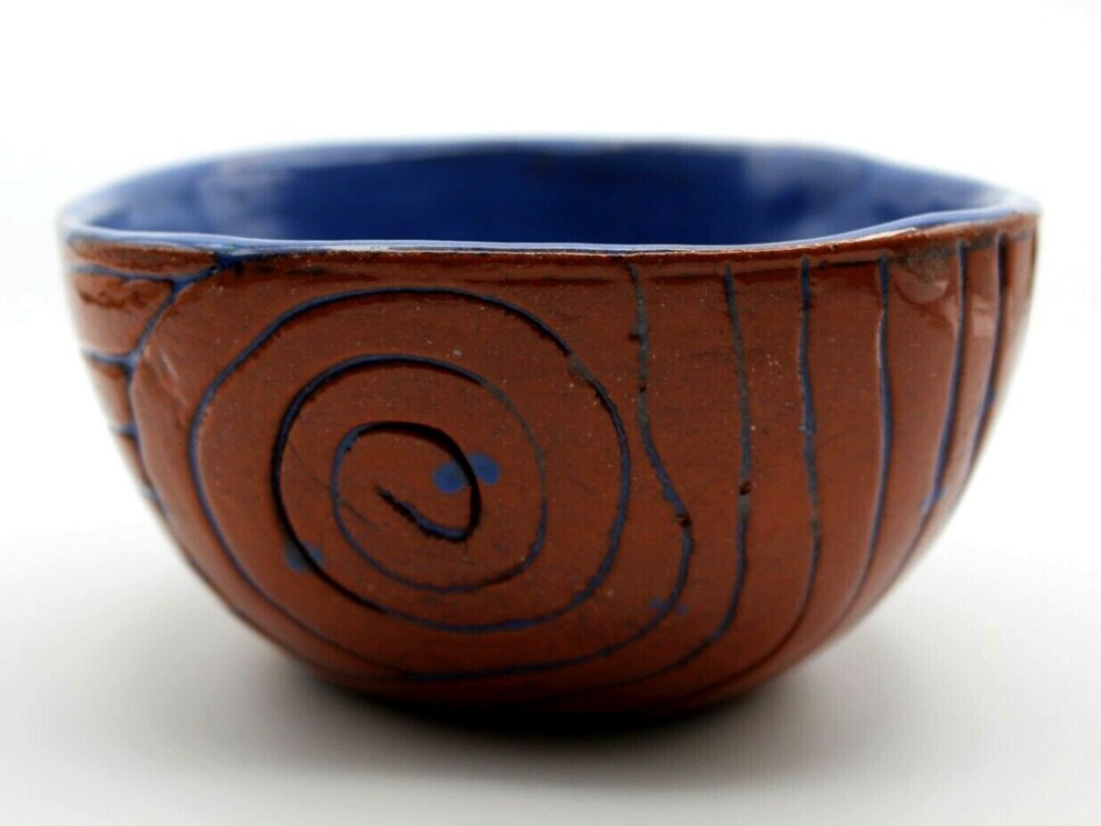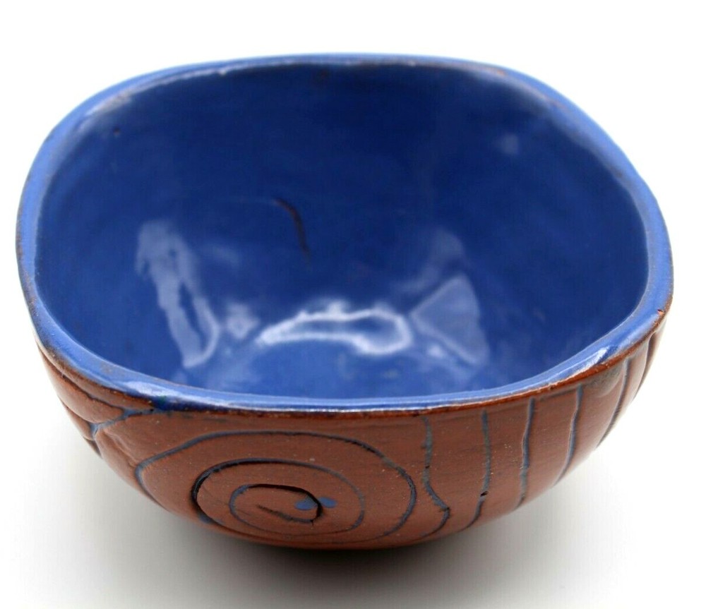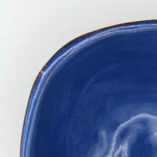 Studio Pottery Clay Blue High Glazed Swirl Square Bowl 6 inch 6 inch square bowl 3.25 inch tall Clay and blue swirl pattern , high glaze Not signed Snack, candy, nut bowl Condition-used, no cracks , one small pinhole chip on rim Ships USPS