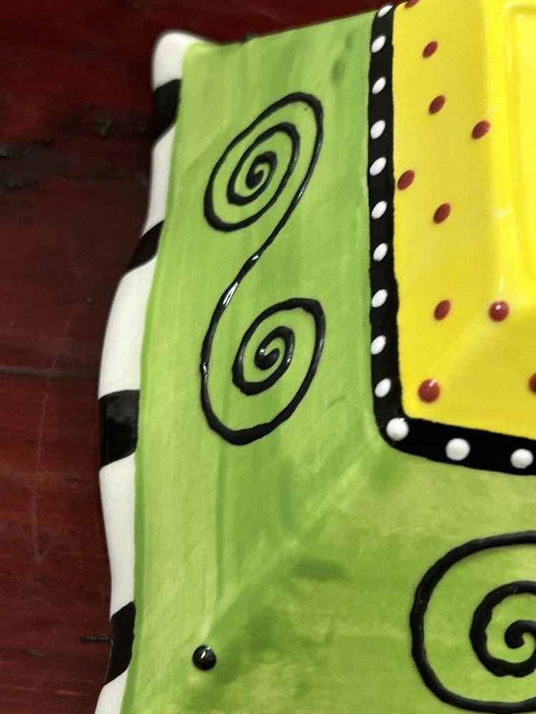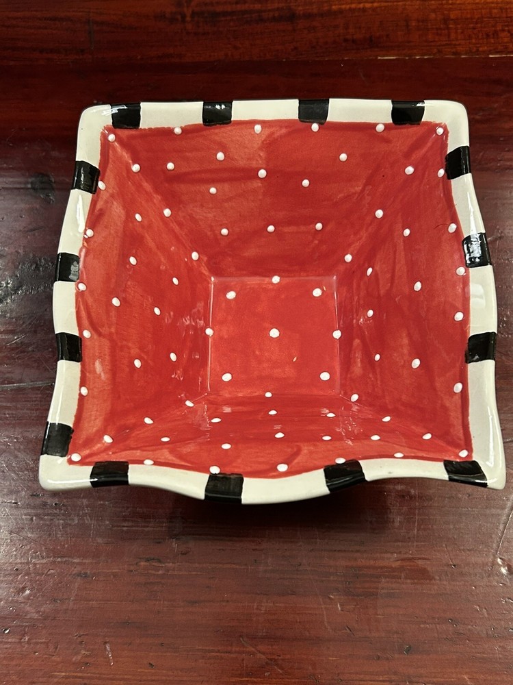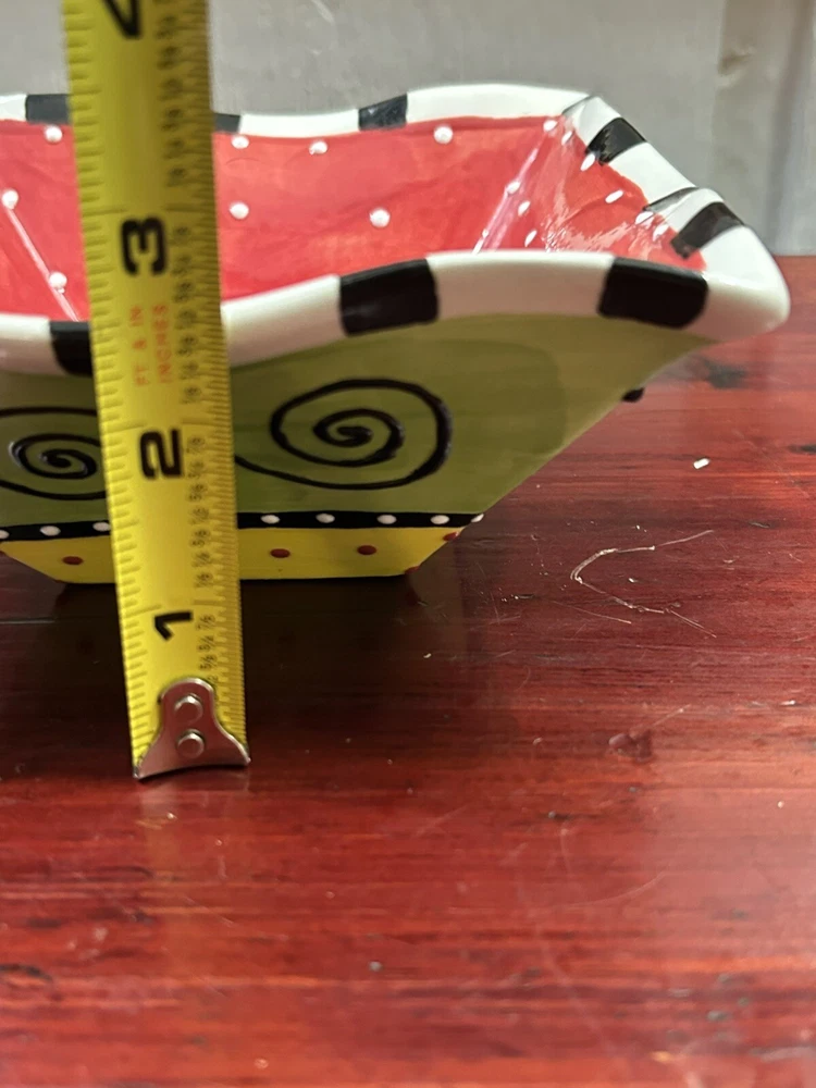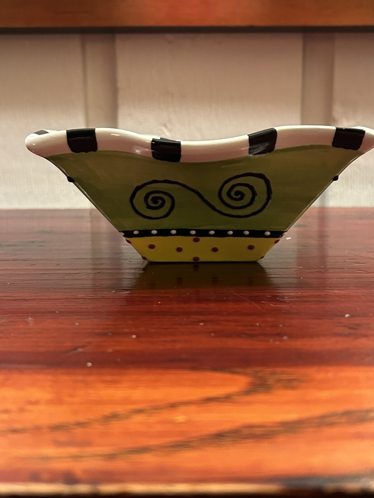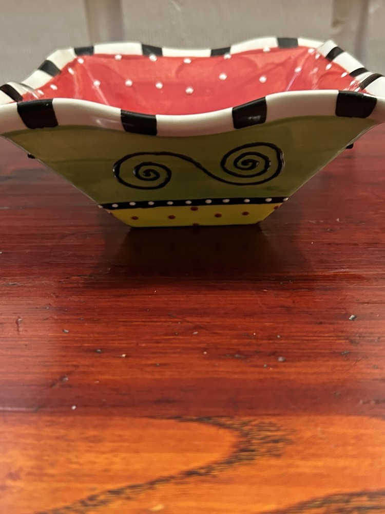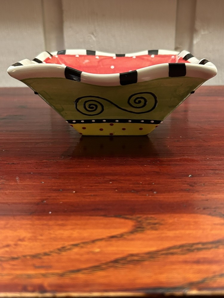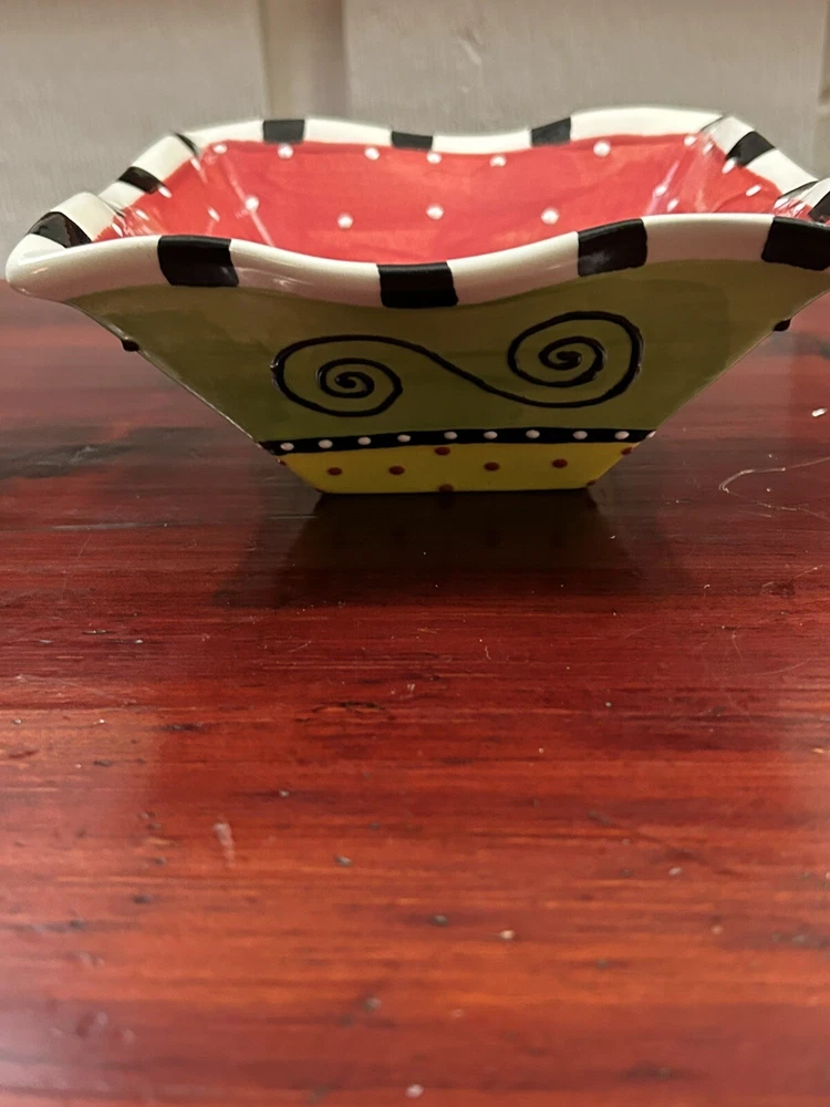 Studio Pottery Colorful 6.5” Square Bowl With Ruffled Edges By Pat Church. Condition is Used. Shipped with USPS Ground Advantage....