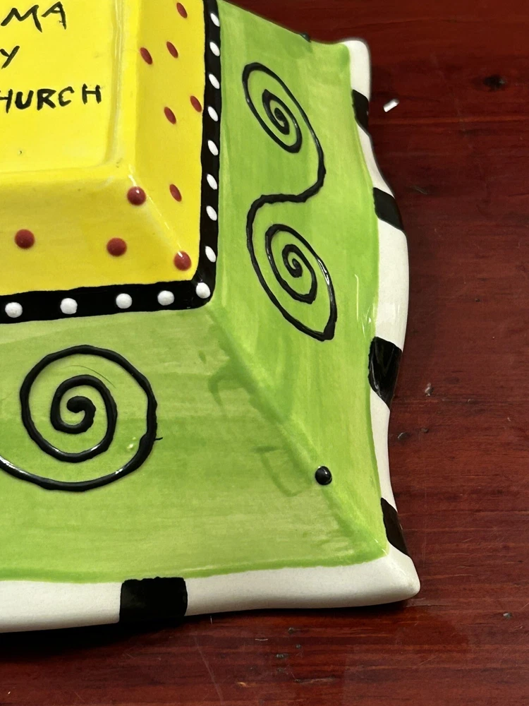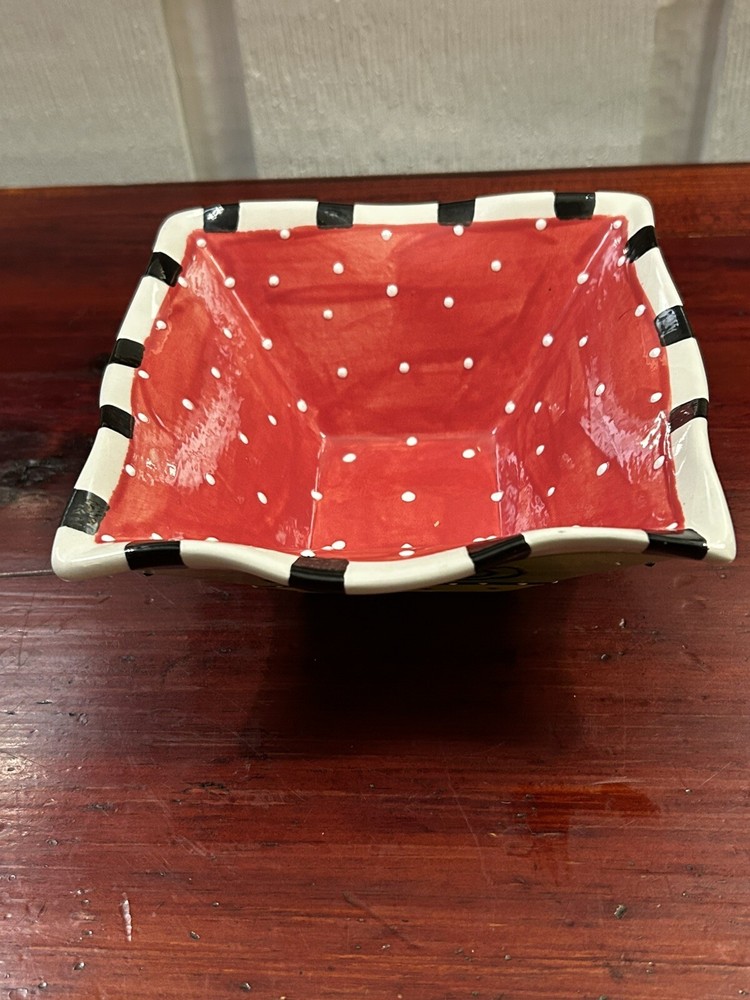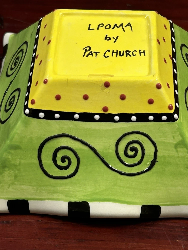 Studio Pottery Colorful 6.5” Square Bowl With Ruffled Edges By Pat Church. Condition is Used. Shipped with USPS Ground Advantage.