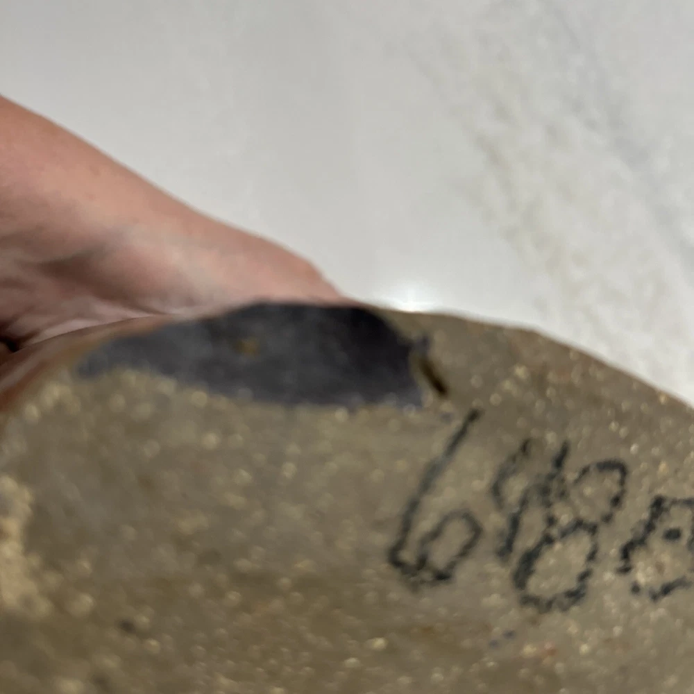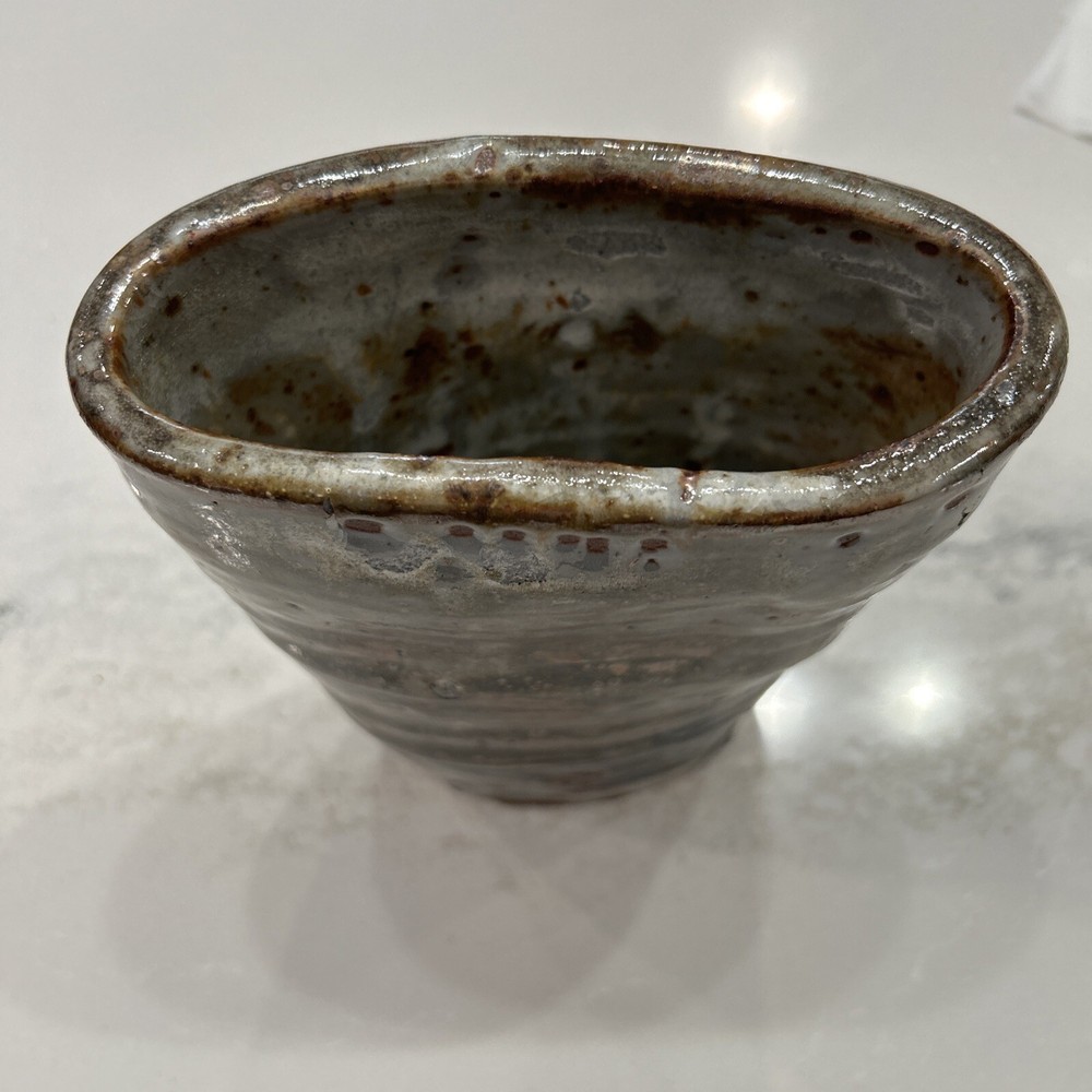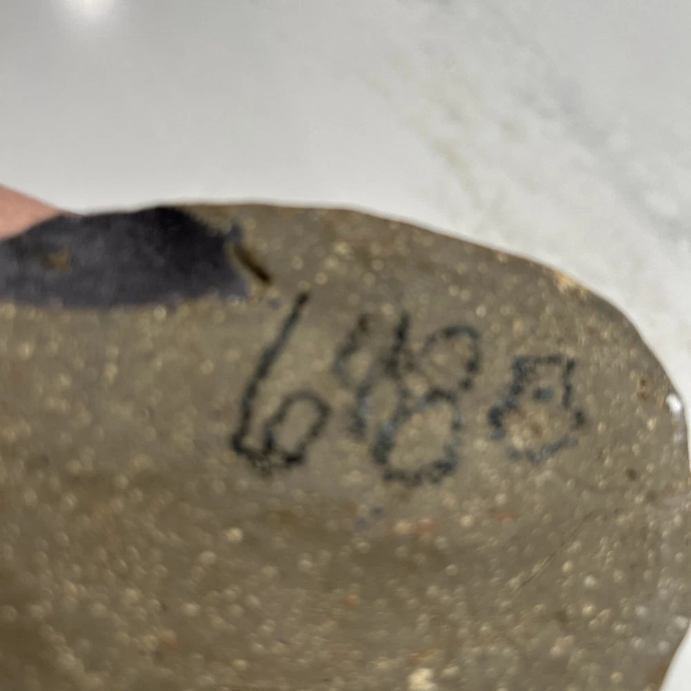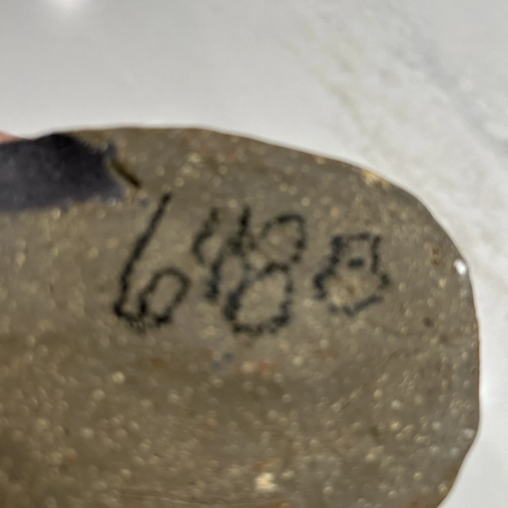 This beautiful elliptical shaped handmade vase is a unique addition to any collection. The glazed stoneware is neutral in color and features intricate pottery work that showcases the artist's skill. The signature adds to the authenticity of the piece. Perfect for displaying flowers or as a standalone decorative item, this pottery vase is a must-have for pottery enthusiasts or anyone looking for a one-of-a-kind piece. Chip on bottom towards signage. Does not affect appearance.