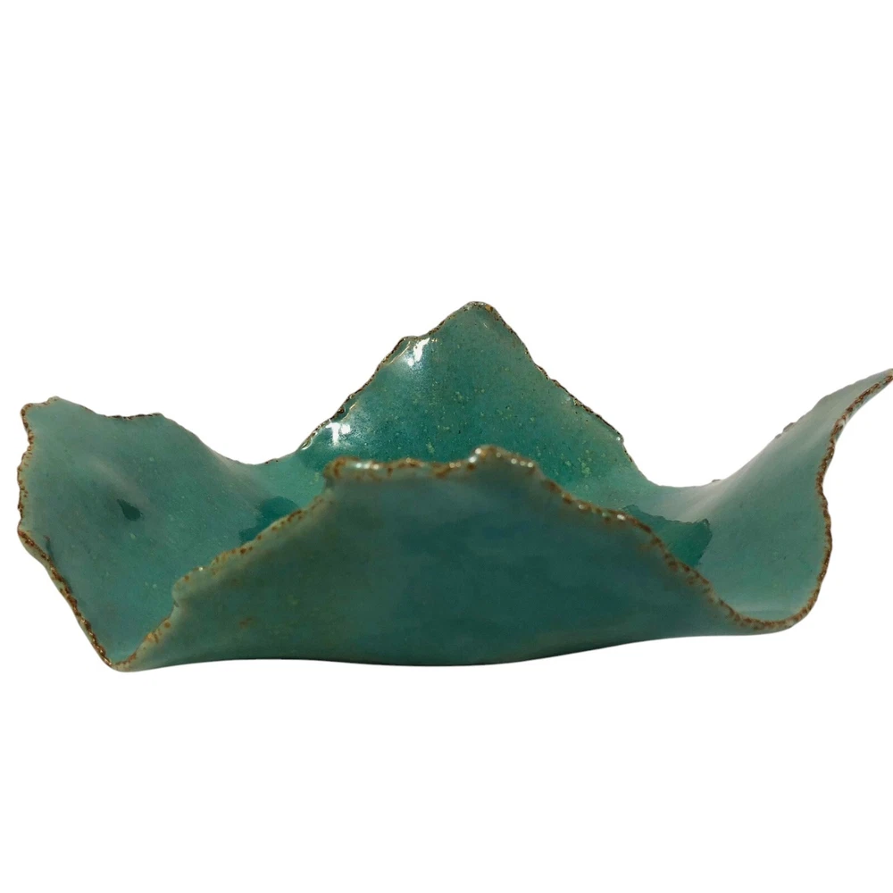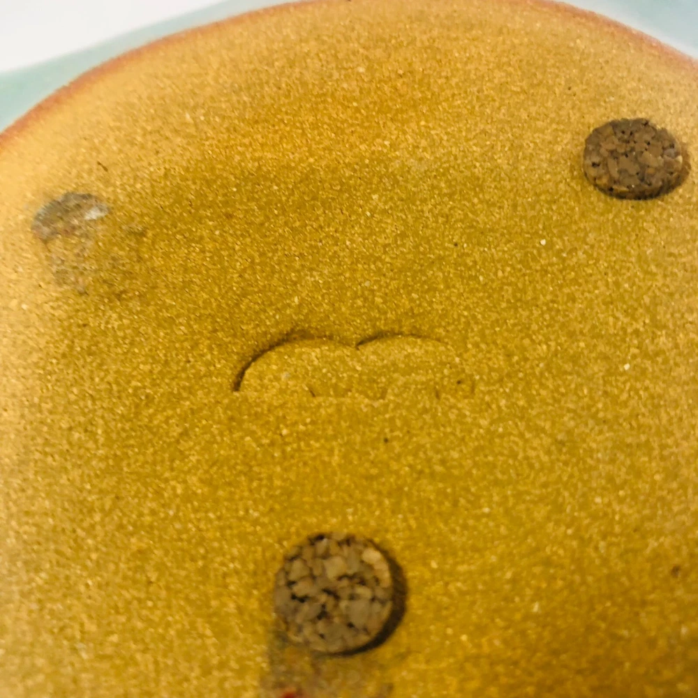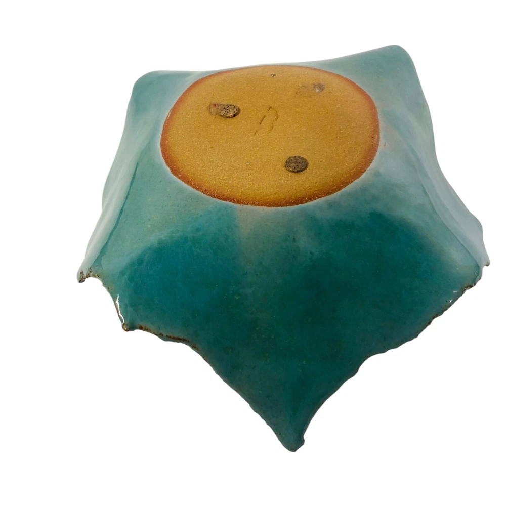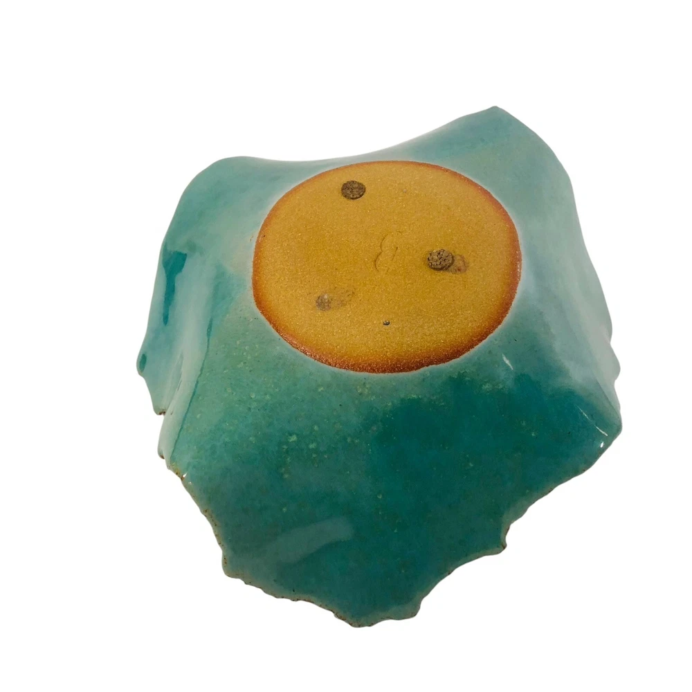 Studio Pottery - Marked - Green Brown Square Bowl with Circle Design in Center with Rough Edges Bottom marking - Design appears to be 2 rainbow shapes overlapping or a really short and thick "M" Dimensions - Length - 10" Width - 9" Height 3.5" Preowned - in Good used condition. No chips or cracks found. Please review photos as they are part of the description.