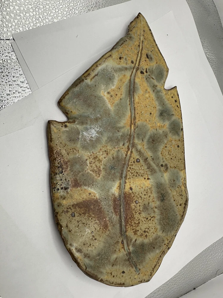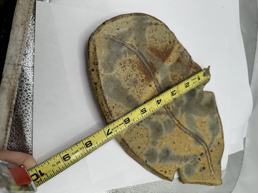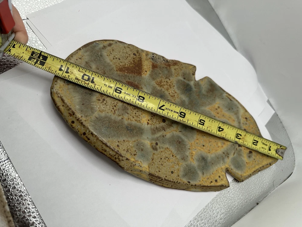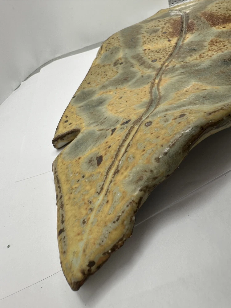 Studio Pottery Serving Plate Dish Leaf Shaped Handmade Pottery Art Footed...
