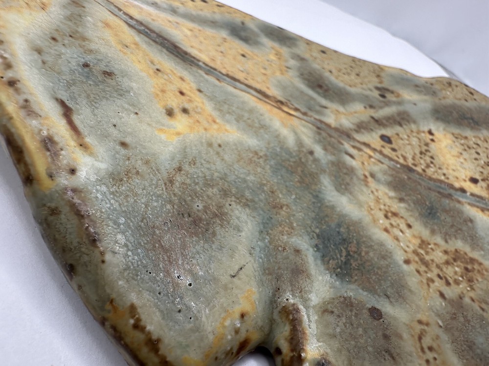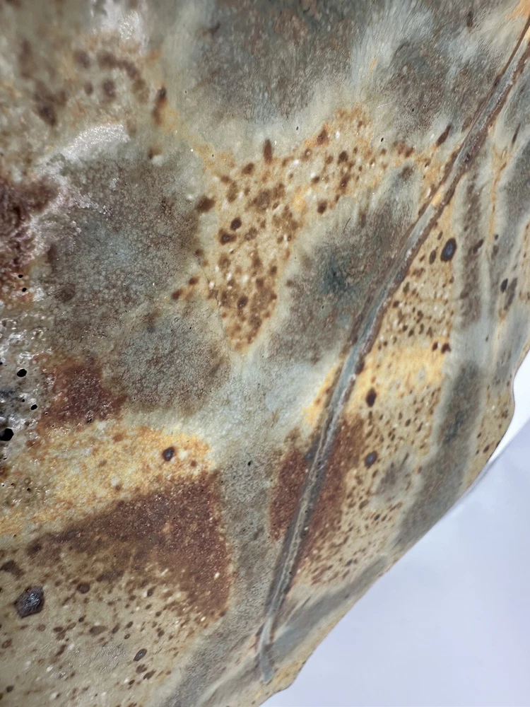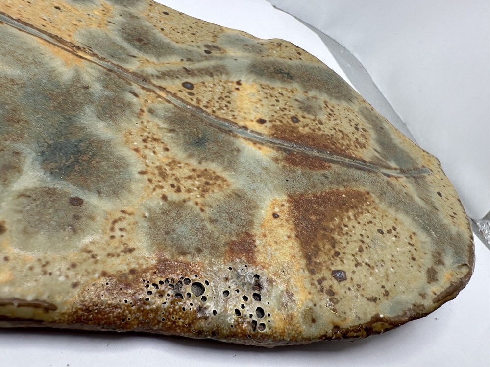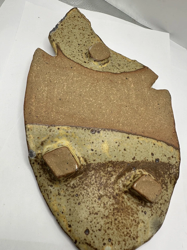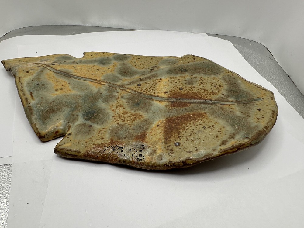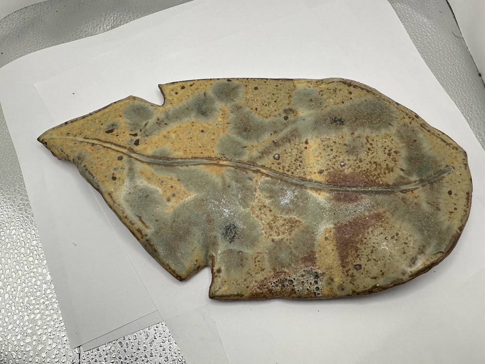 Studio Pottery Serving Plate Dish Leaf Shaped Handmade Pottery Art Footed