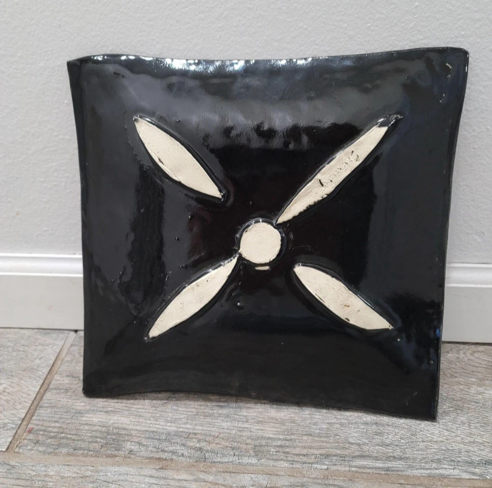 Studio Pottery Serving Tray Artist Signed Decorative Catch All Wall Hanging Gorgeous Vibrant Colors