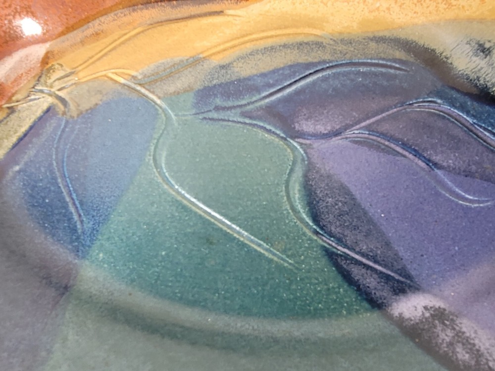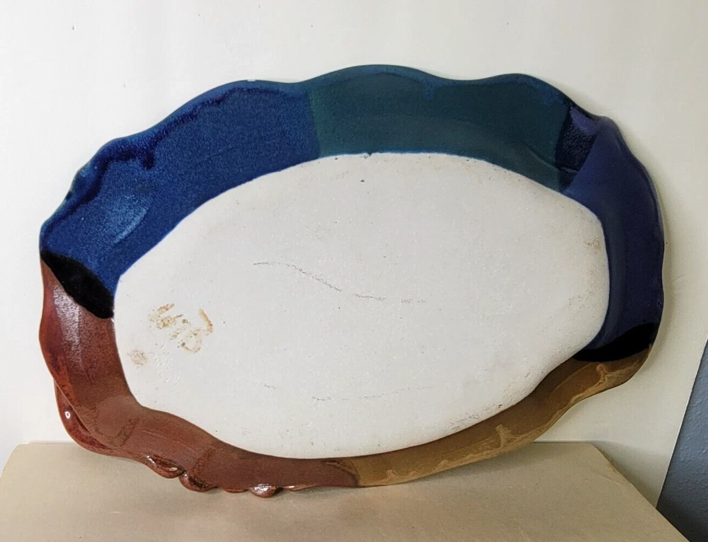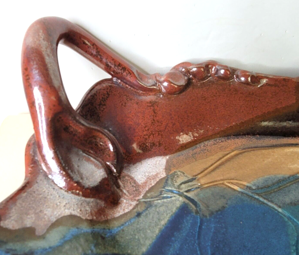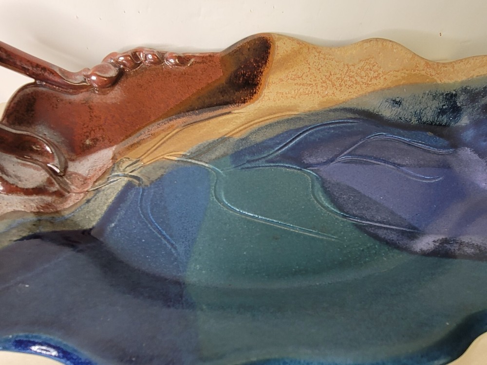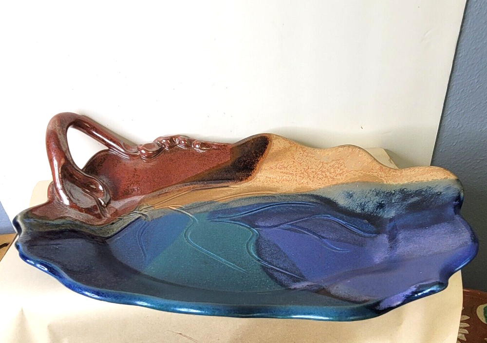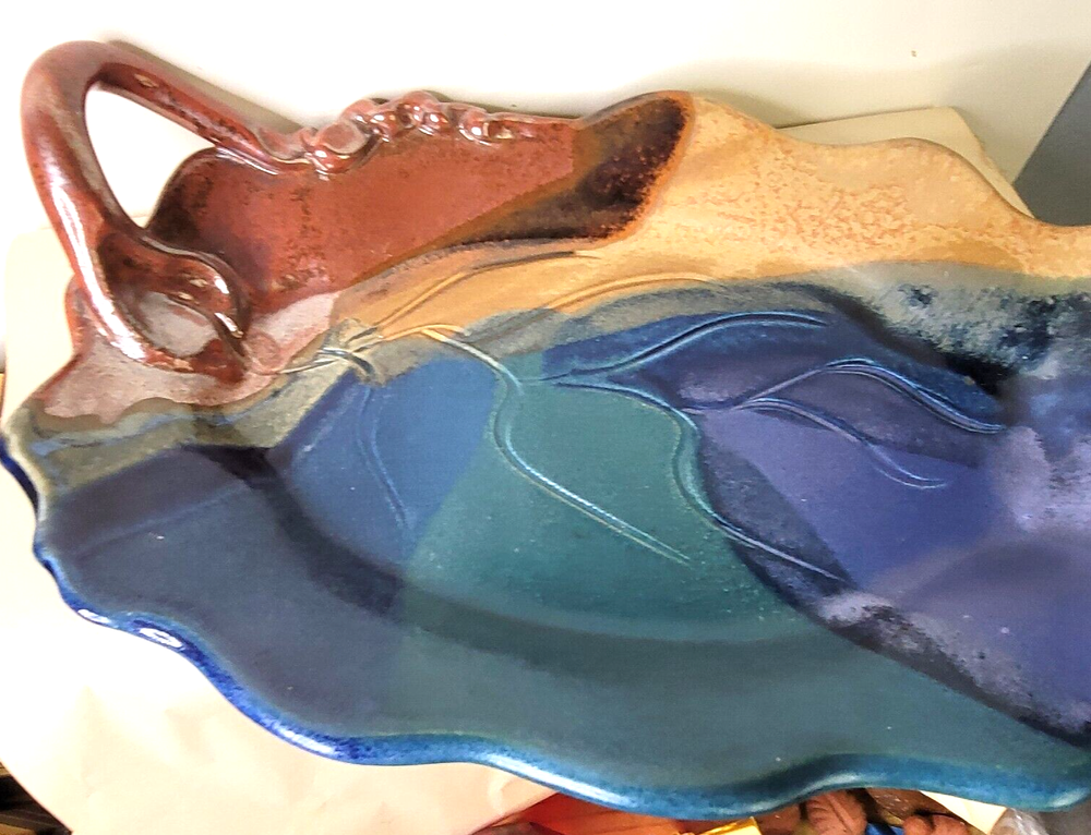 This beautiful leaf shape bowl is done in a rich oxblood color with shadings or fprest green and teal. It is signed...It has an applied handle that is made to look like a vine. .15 x 10 x 3 inches. this beautiful bowl is preloved...but it looks perfect to me. Happy to combine shipping when you find more than one treasure. Let me know if you have any questions...or if you want additional photos. Most of my items are vintage. Any vintage item should be considered used and should be expected to have some level of normal wear from age or storage. I ship from a non smoking house, but I don't know the story of these items before I get them. Some people may notice odors that I don't, so I can't say that they are odor free, smoke free, or pet free. If there is a problem, or you are unhappy with any of my items, please get in touch with me. I really don't like to have unhappy customers and will try my best to make your shopping experience with me "just right." I love to ship multiples. When you win more than one item, I charge you the highest freight and between 1 and 5 dollars for all the additional items within reason. Have a good time shopping with me and please add Gollitexas to your favorites list."