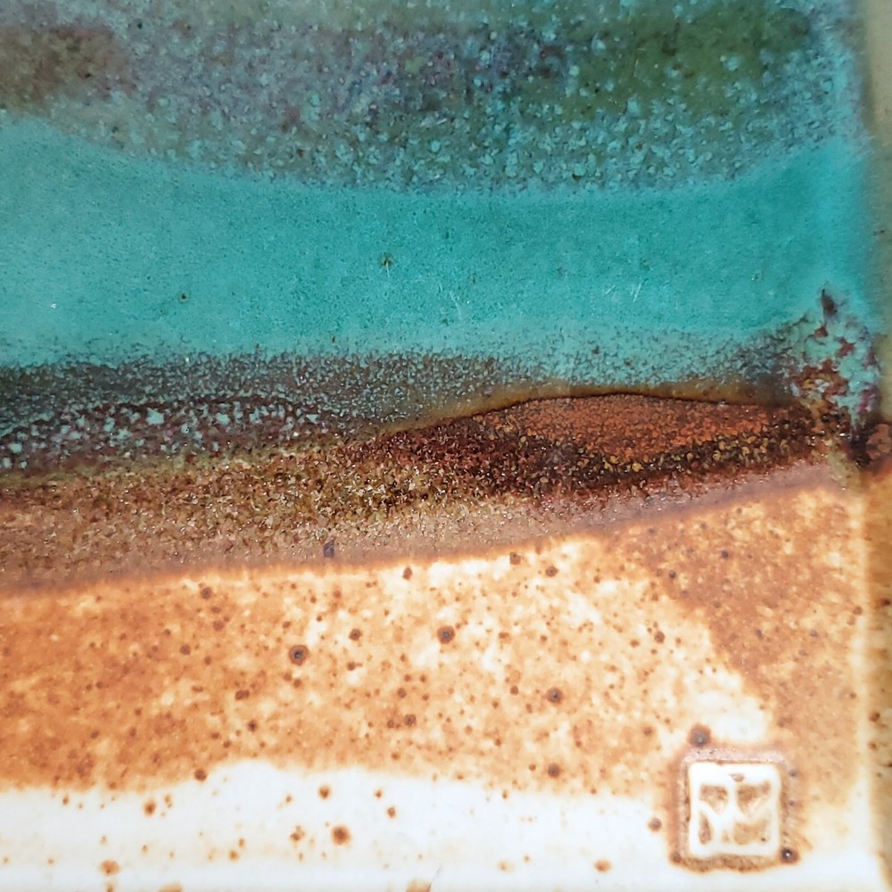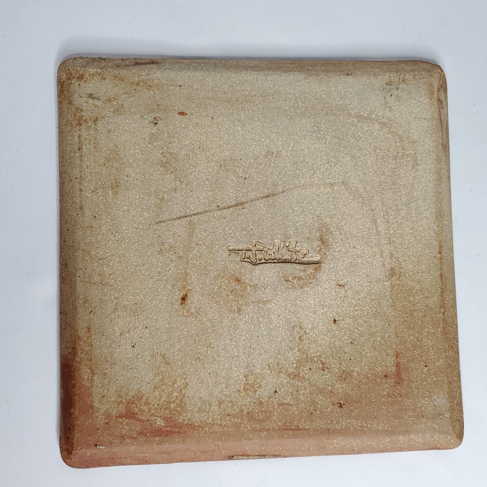 Studio Pottery Square Serving Tray Aqua Blue Turquoise Brown Red Signed TJ White 10"...