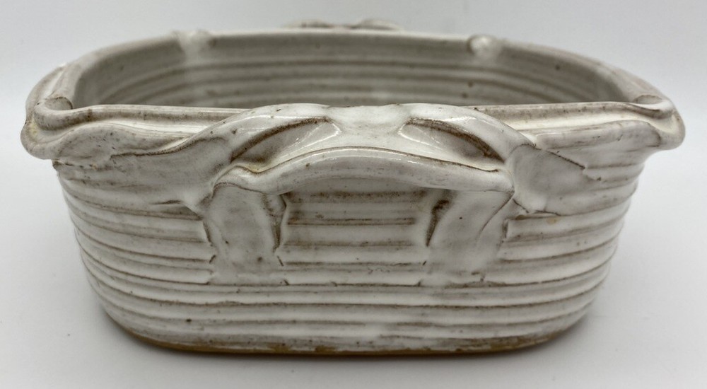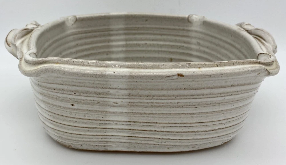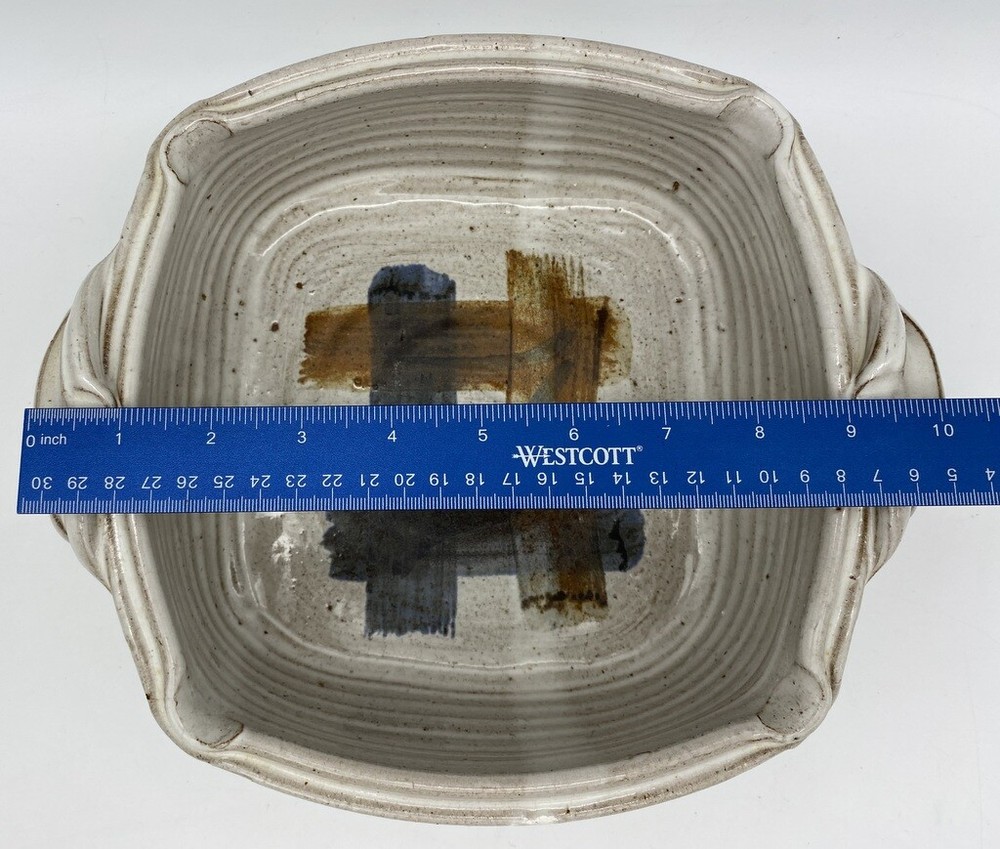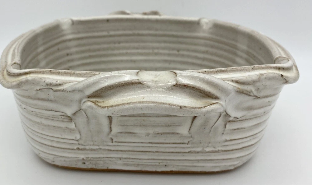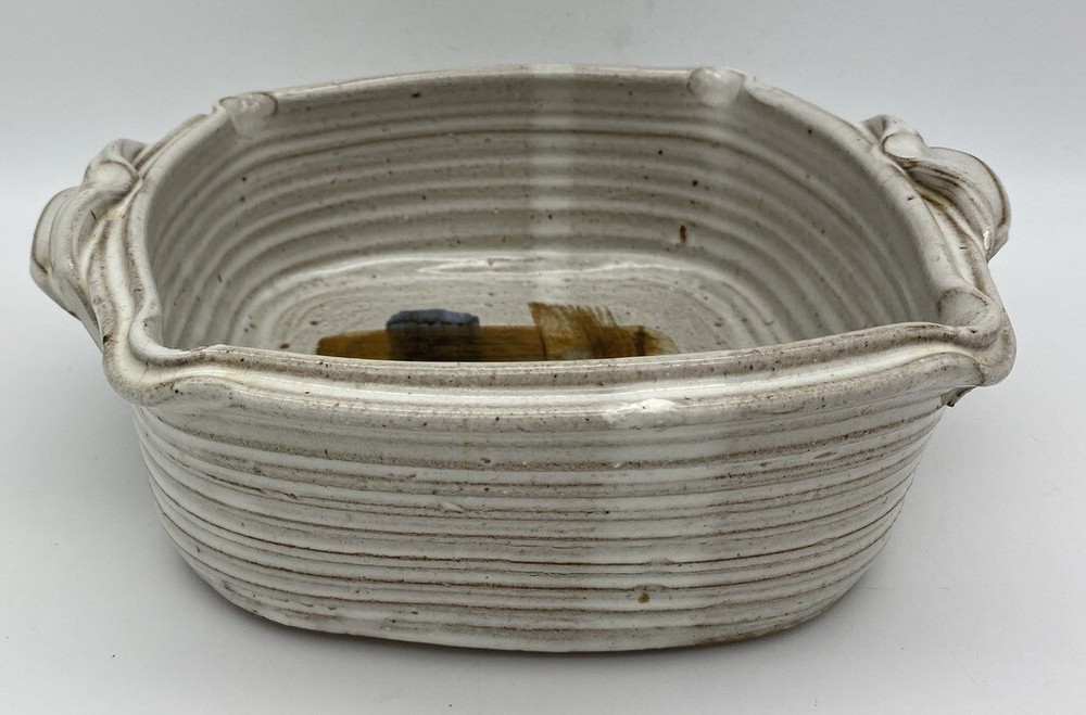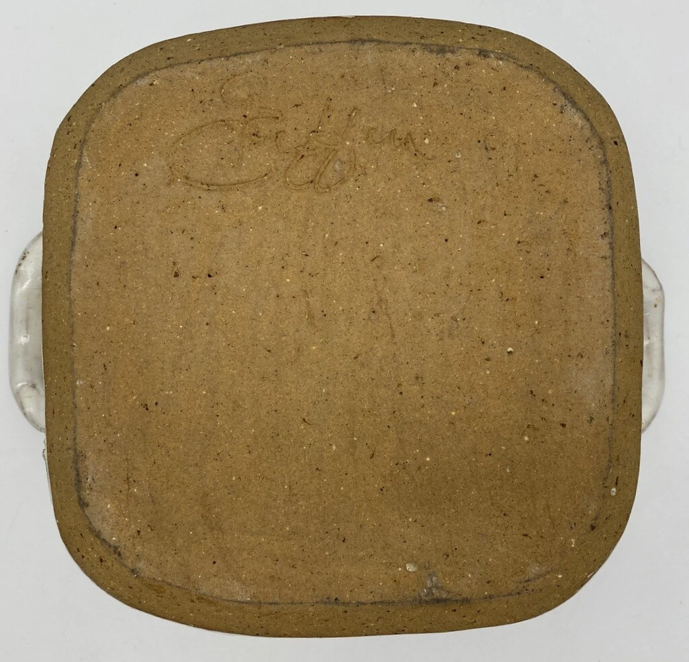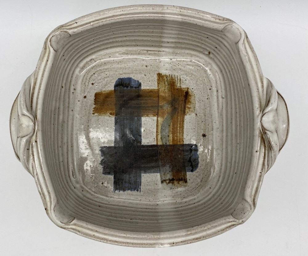 Pretty hand painted studio made baker Detailed handles 9" long and just over 9" wide and 3.5" high Great Artist Piece Signed Griffin on bottom Box 46...