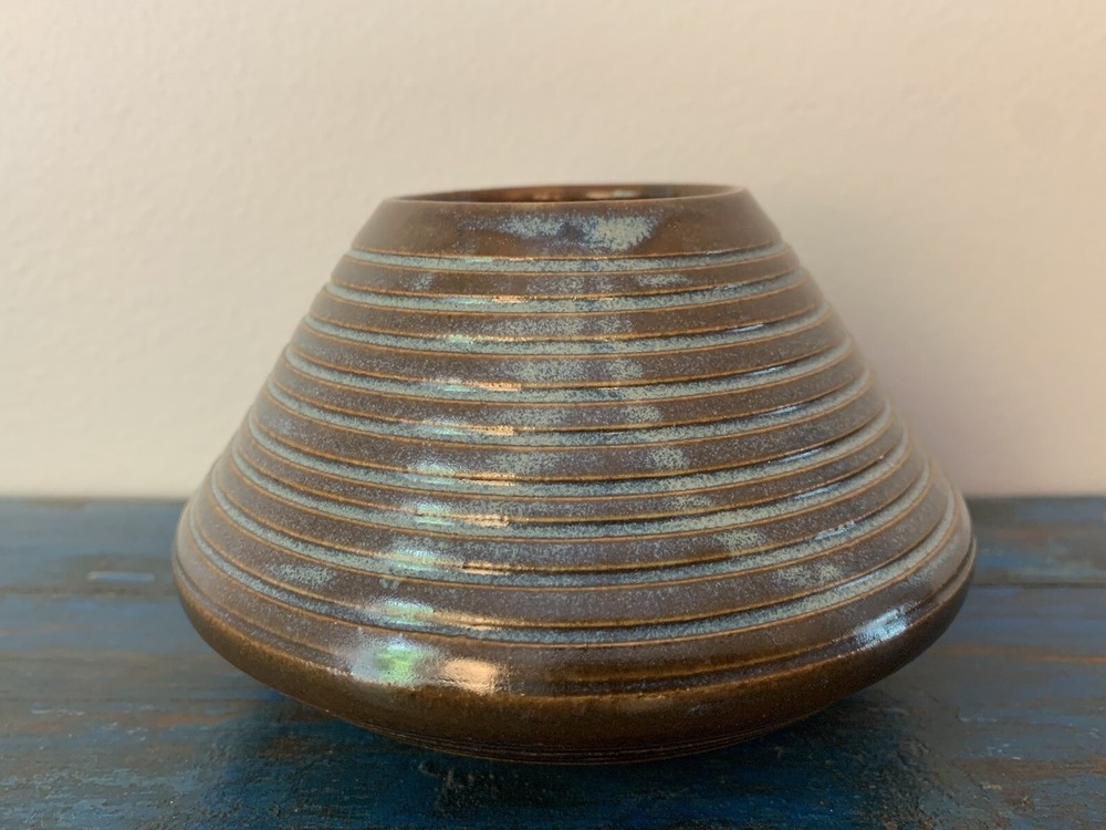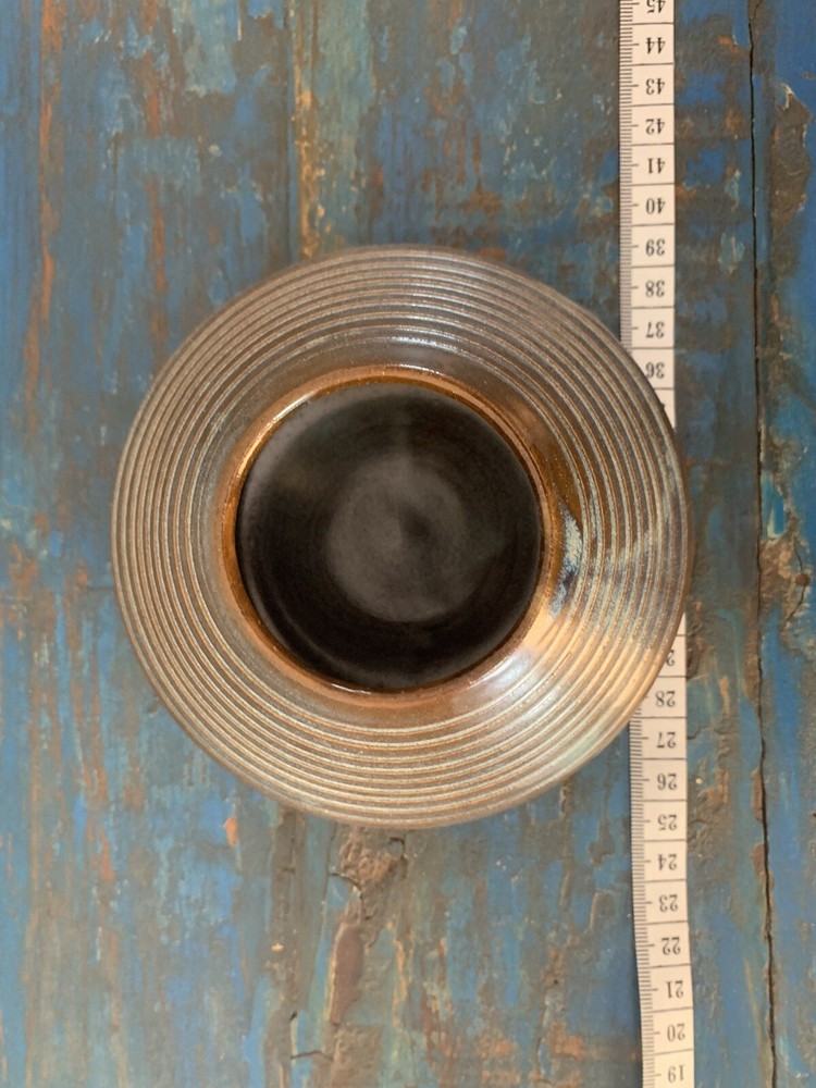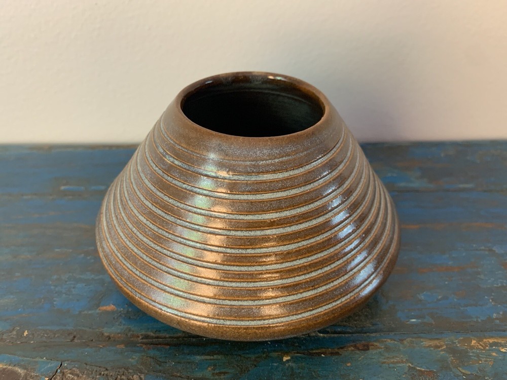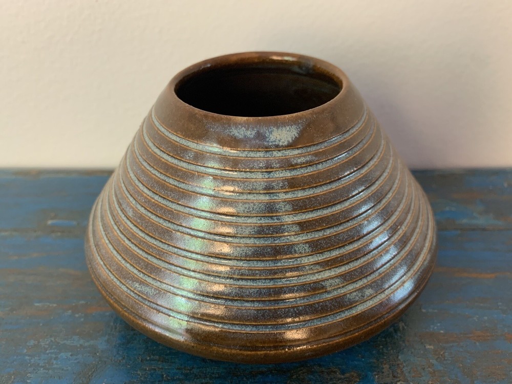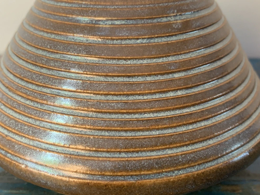 This unique vintage vase is a stunning piece of art! The swirls of brown and blue create a mesmerizing look, and the UFO shape makes it a real conversation starter. The craftsmanship is excellent, with the artist’s signature adding a special touch. It’s in great condition for its age, with just minor wear that adds to its charm. The size is perfect for displaying flowers or as a standalone decor piece. Love the one-of-a-kind design—definitely a treasure for any collector!