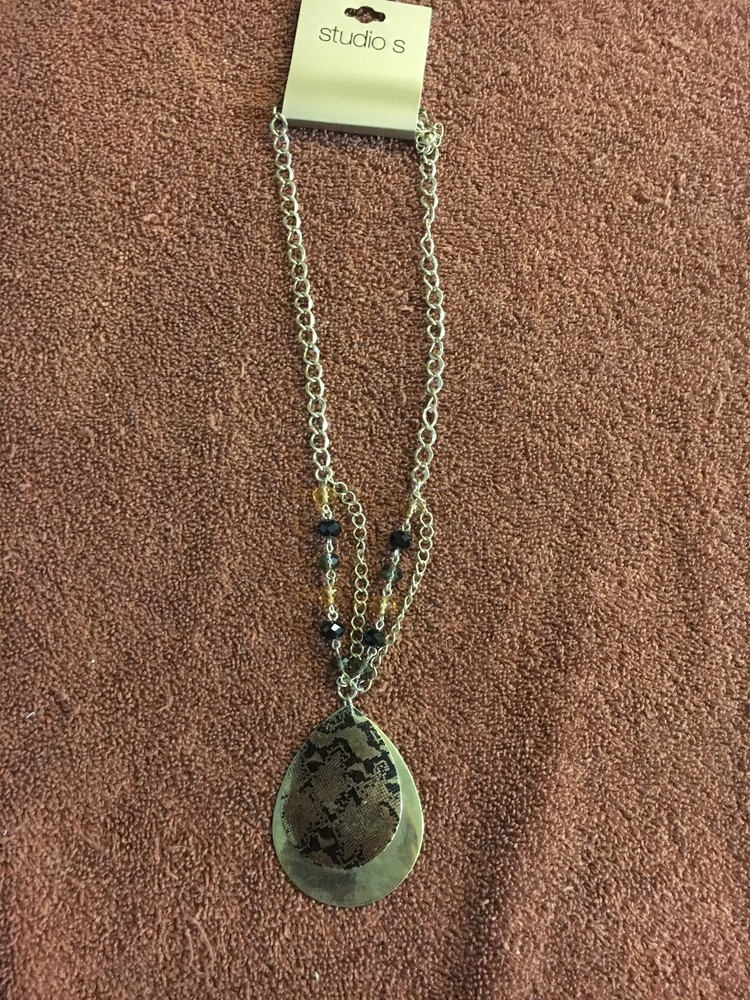Fashion is all about making a statement and having fun with your accessories. This pendant will certainly show off your unique sense of style Pendant is almost 2-1/2" tall . . . Chain is adjustable up to 21" NOTE: There may be sticker residue on tag, but rest assured, this is a new/unused item Be sure to check out our store ( www.stores.ebay.com/chisholmsestate ) . . . we DO combine shipping when possible, and you never know what other "treasures" we may have for sale (GL5-5)