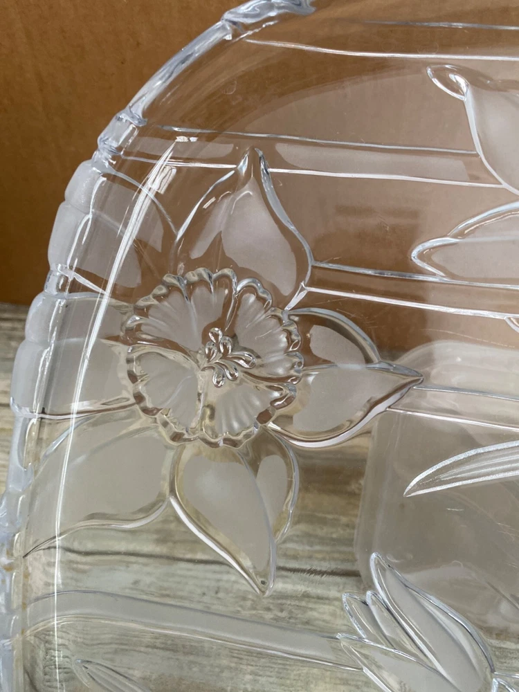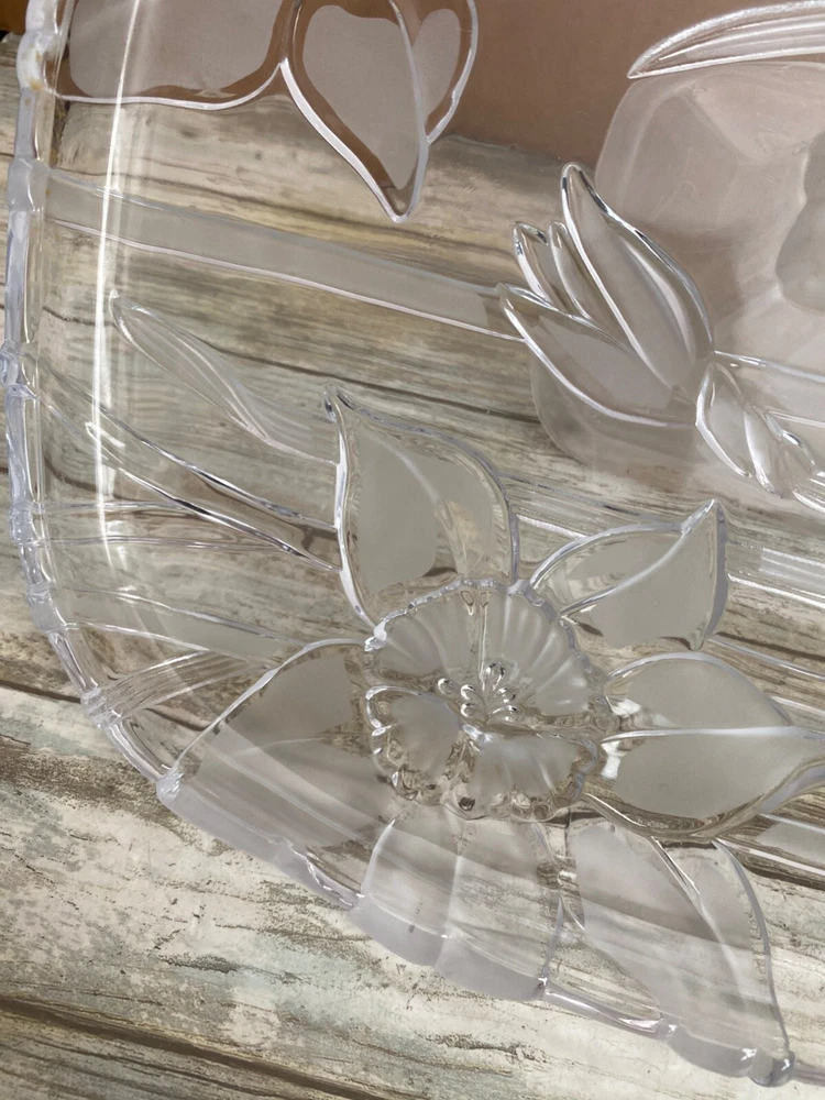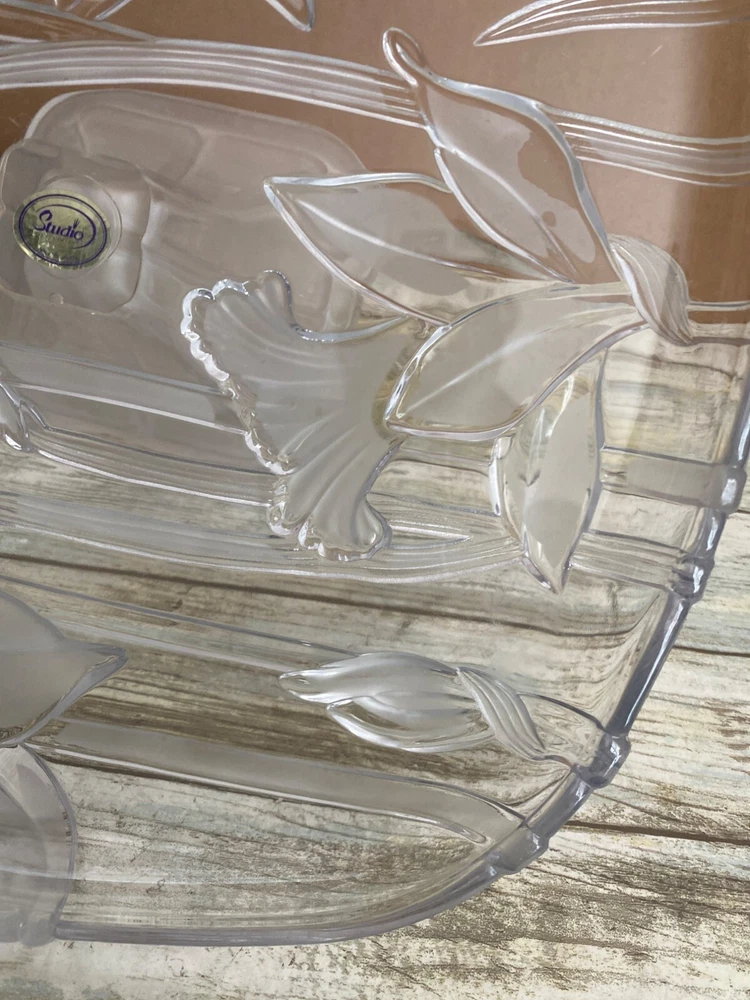 This elegant square glass cake stand is absolutely stunning—the delicate lily etching adds a beautiful, sophisticated touch. The pedestal base gives it a classic look while keeping desserts elevated and eye-catching. Perfect for parties, teas, or just displaying sweets in style. High-quality Japanese craftsmanship shines through, and even pre-owned, it looks flawless. Love how it elevates any table setting!
