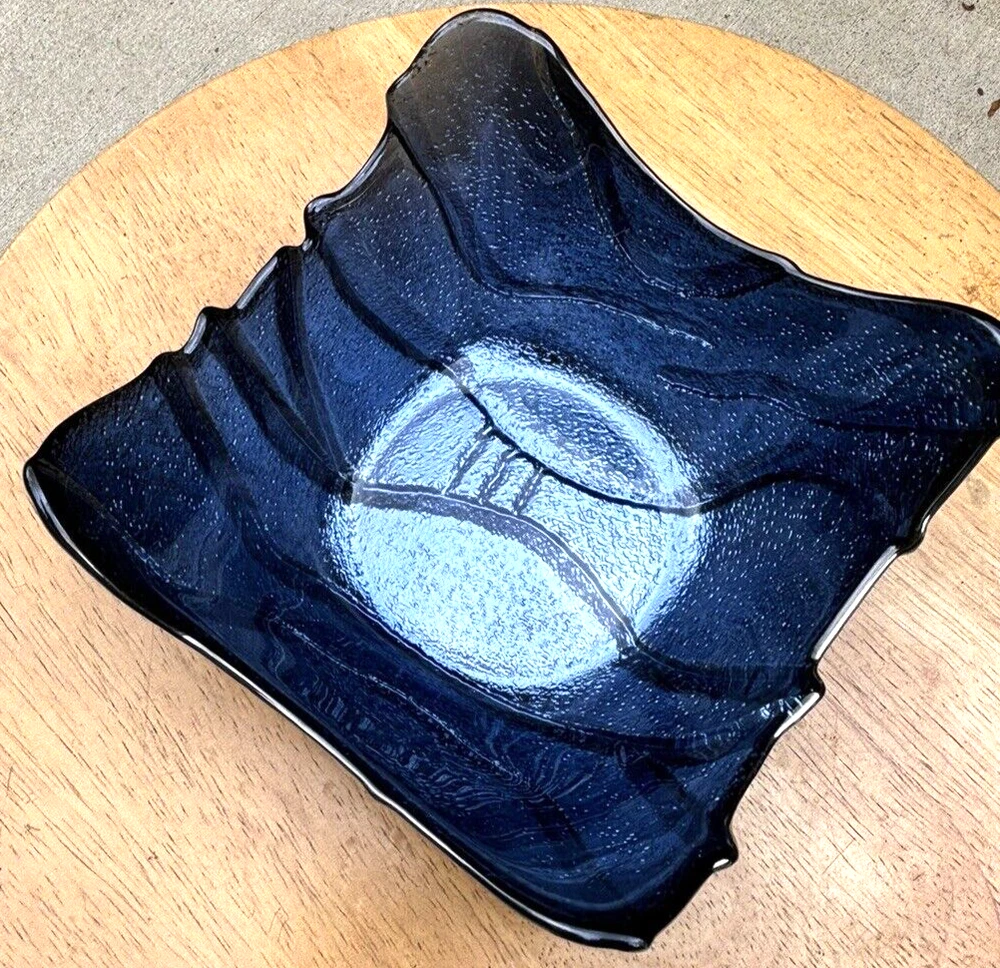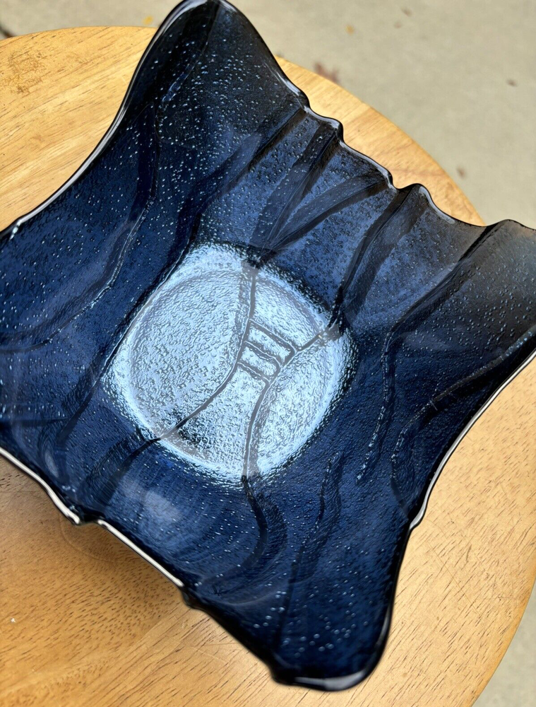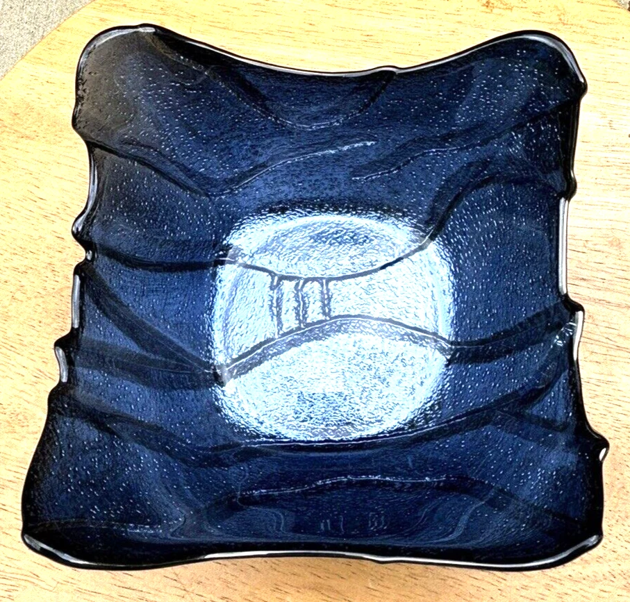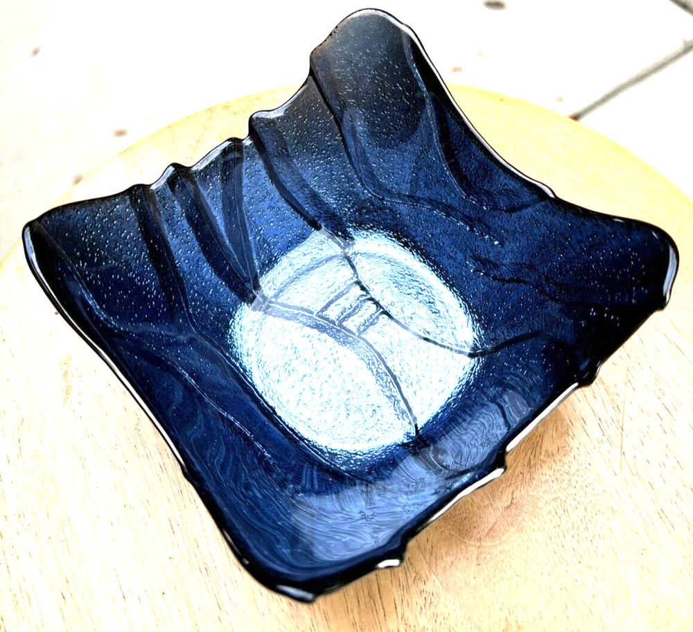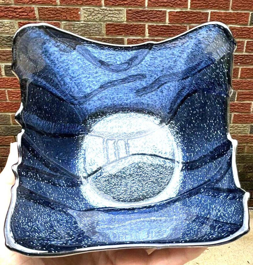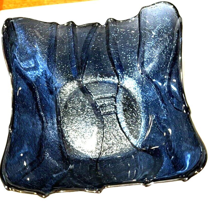 This beautiful small bowl by Studio Silversmiths is a perfect addition to any collection. The green leaf pattern in blue and silver foil art glass is hand painted with precision and care. The bowl is 5"x2" and has been crafted with the studio technique. It is a unique piece of art glass that is perfect for any occasion, be it love and romance, housewarming, or multipurpose. The bowl is handmade and features the brand's signature production style. It is made of high-quality glass and is a great addition to any decorative collection. Keep in mind, this is a small, beautiful, decorative art piece for display purposes. It was not designed to be used for food serving or food prep. Would be beautiful in an entranceway display, or even on the nightstand for small jewelry pieces.