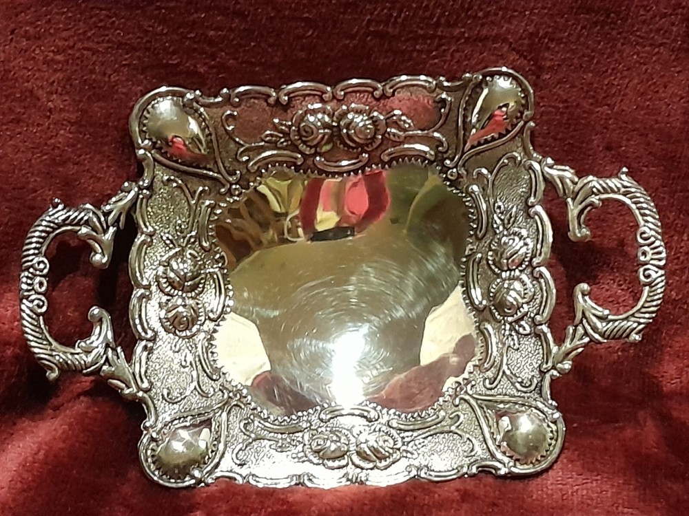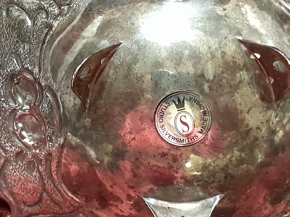 Studio Silversmiths Footed Dish. Very versatile. Can be used to hold Candy, Mints, Nuts, Loose Change, Jewlery or Keys. Mild abrasives marks noted from previous cleanings over time. Please view available pictures for closer inspection. Free First-Class Mail Shipping. Other shipping methods are calculated based on delivery location. To determine postage for a specific area view shipping and handling tab, enter zip code, press "get rates" and rates specific to that location will appear in shipping options table.