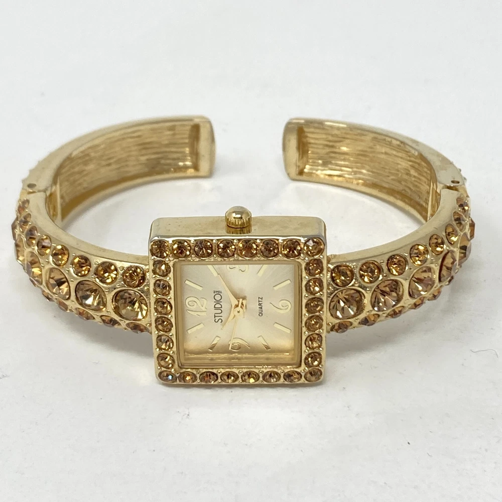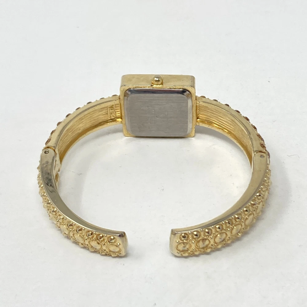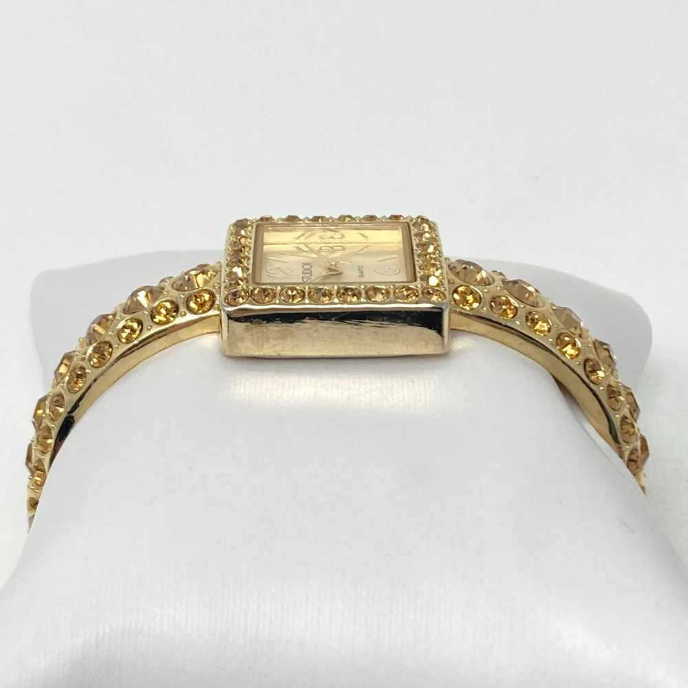 This watch is absolutely stunning! The gold tone and orange crystals give it a glamorous yet fun look. It keeps perfect time with the new battery, and the slight wear on the band adds character. Love that it ships fast and comes with a hassle-free return policy—great deal for such a stylish piece!